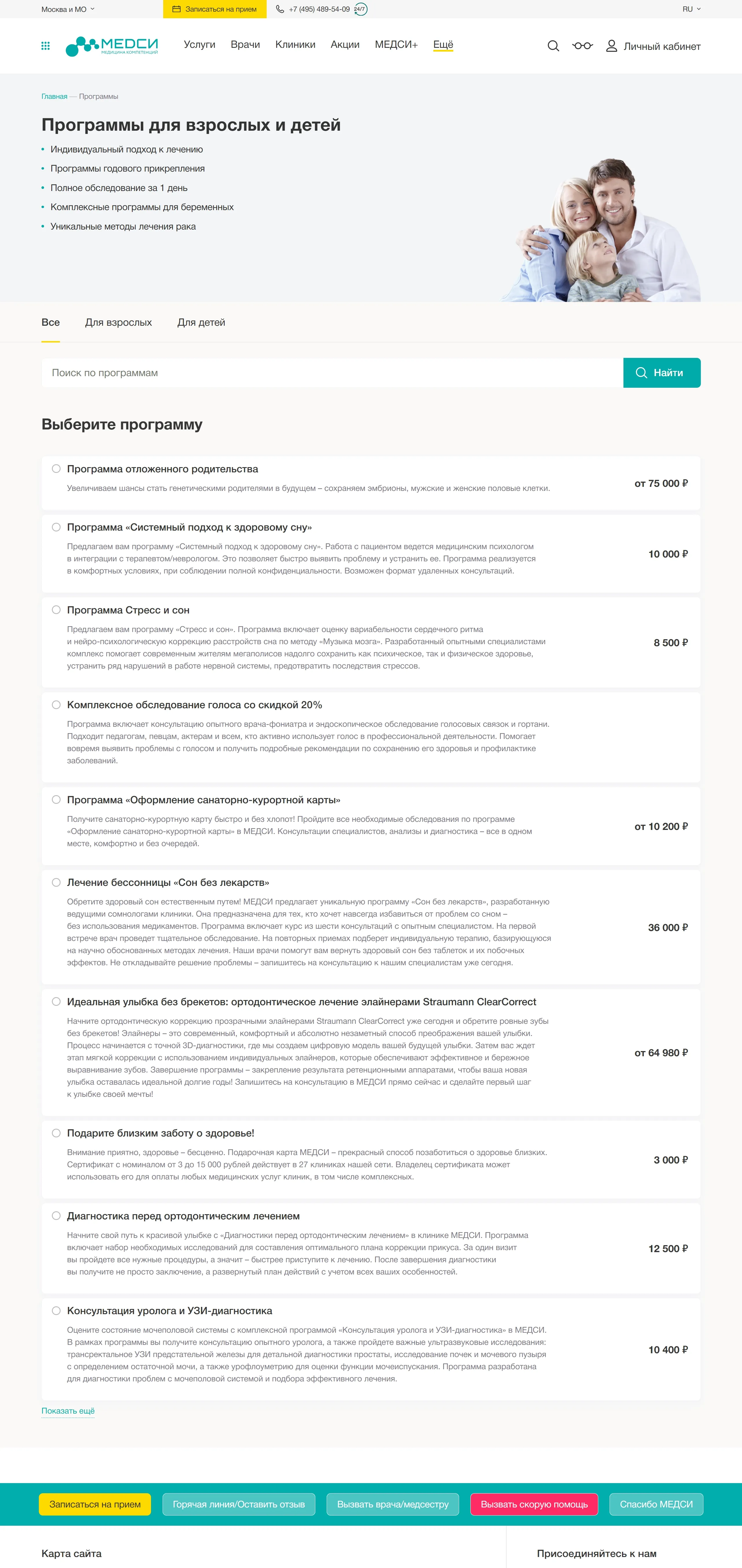 Официальный сайт сети медицинских клиник, предлагающей широкий выбор услуг для взрослых и детей, включая консультации врачей и диагностику с использованием новейшего оборудования.