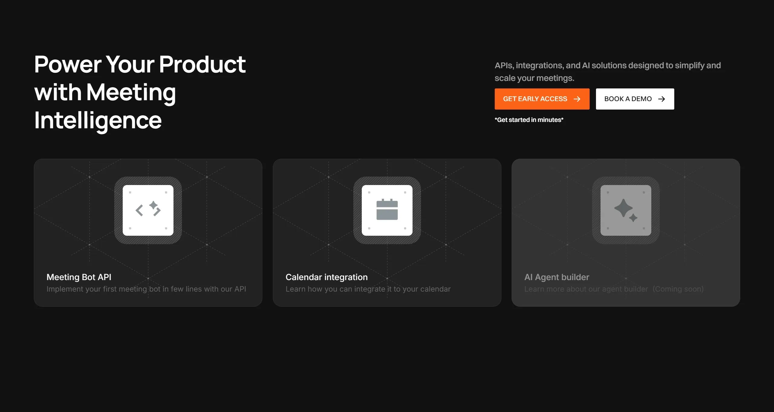 Платформа, предлагающая единый API для создания интеллектуальных ботов для встреч, которые могут подключаться, записывать, транслировать и анализировать данные с таких платформ, как Meet, Teams и Zoom. Это решение позволяет командам сосредоточиться на разработке самих AI-агентов.