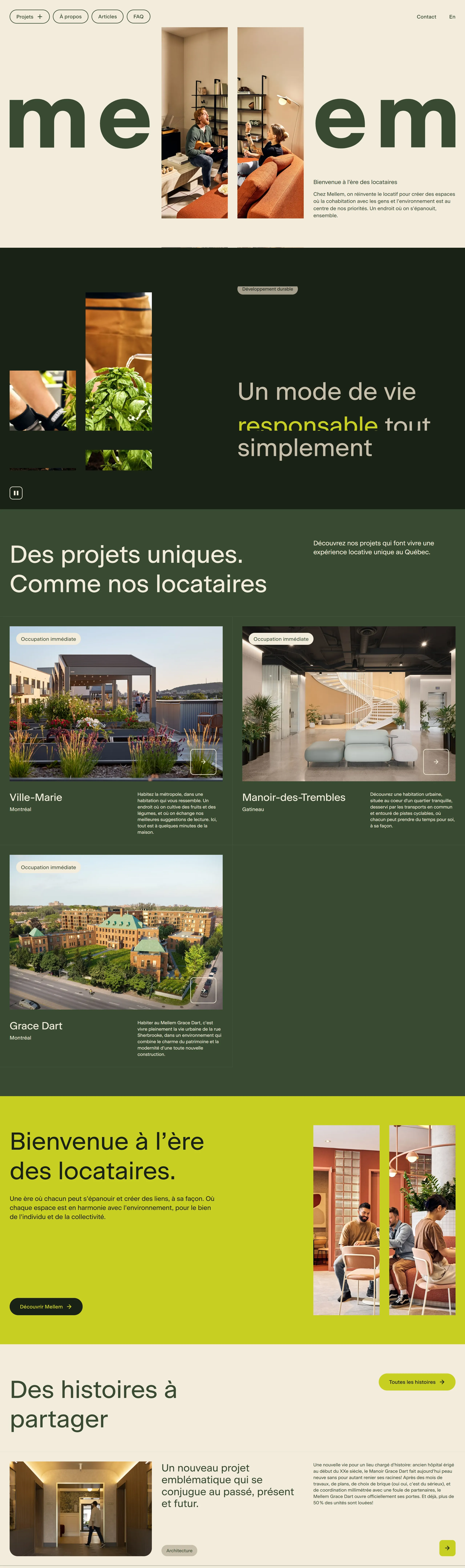 Mellem предлагает уникальные проекты аренды, объединяющие людей и окружающую среду, создавая пространство для совместного роста и благополучия. Компания стремится переосмыслить концепцию аренды, акцентируя внимание на устойчивом развитии и комфорте жильцов.