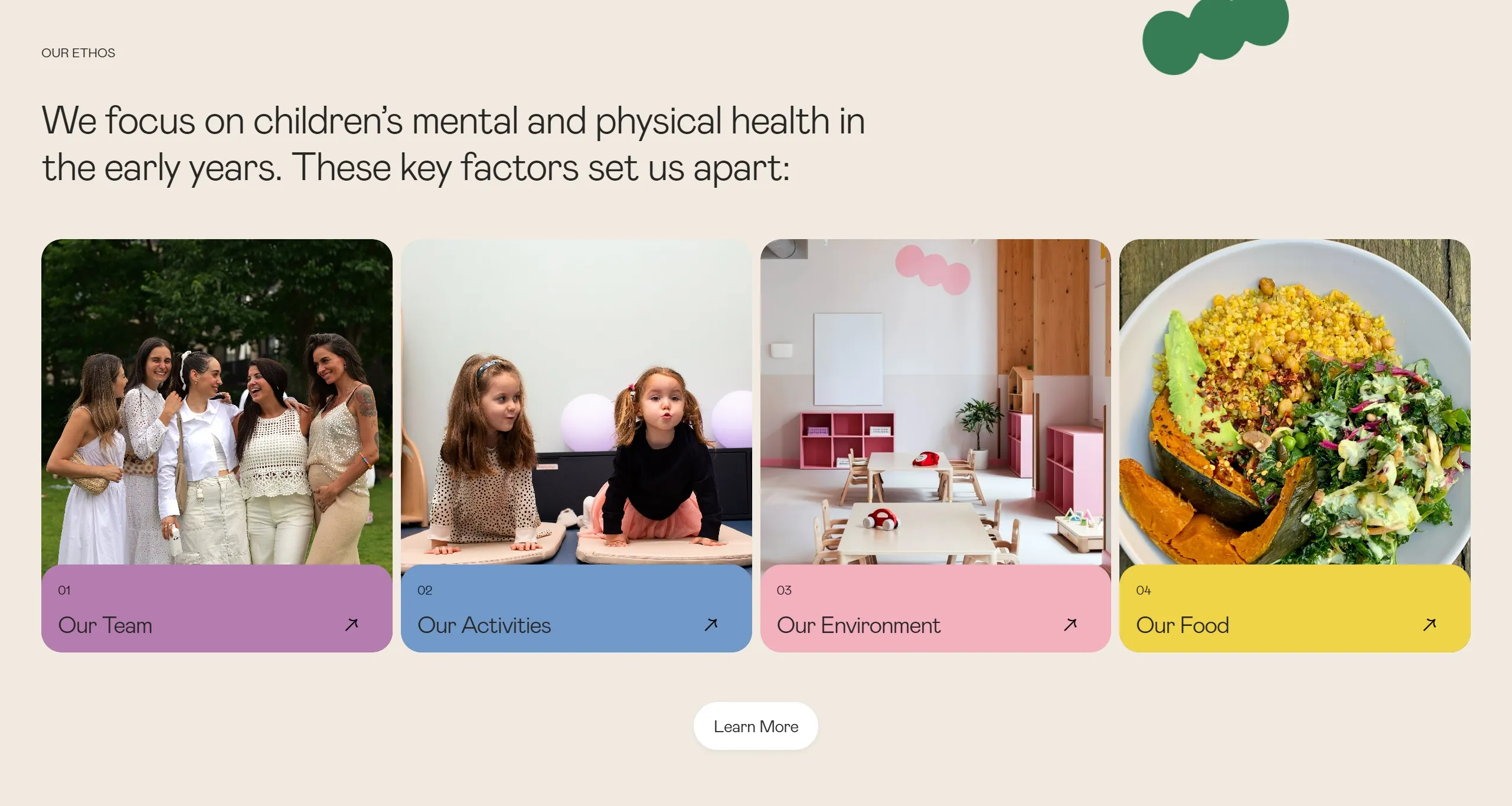 Это детский сад, который стремится помочь родителям воспитывать счастливых и здоровых детей с осознанием важности их развития.