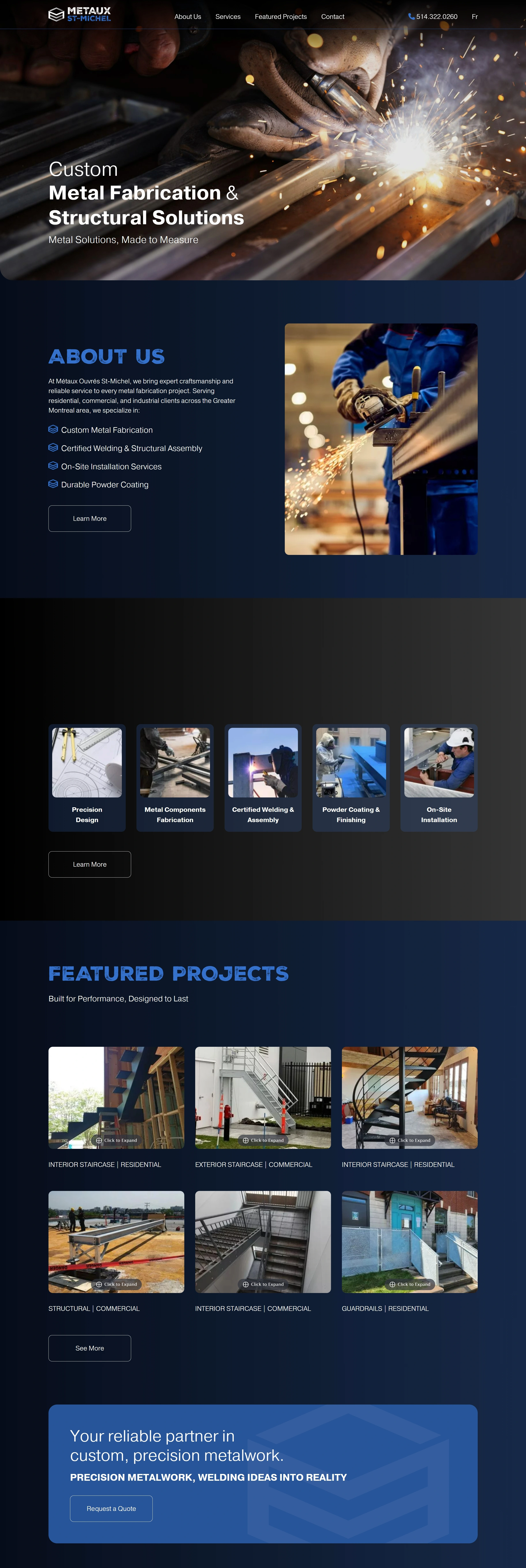 Компания предлагает высококачественные услуги по металлообработке и строительным решениям, обеспечивая надежное выполнение проектов для клиентов из жилого, коммерческого и промышленного секторов в Монреале.