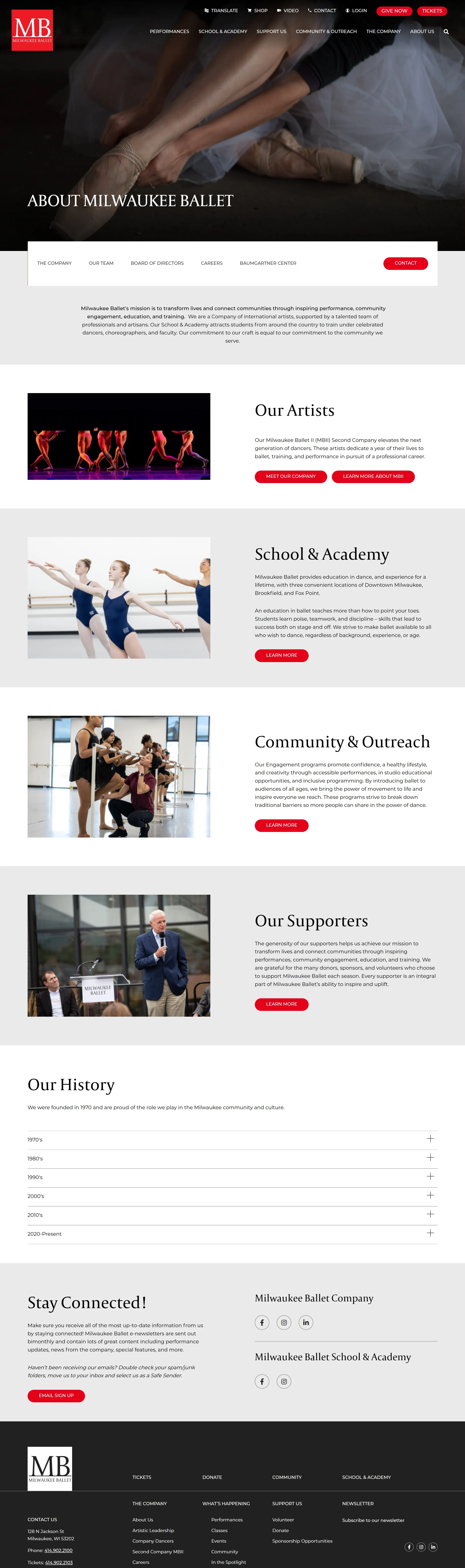 Milwaukee Ballet представляет собой всемирно известную компанию танцоров и национально аккредитованную школу и академию, а также отмеченные наградами программы по работе с сообществом.