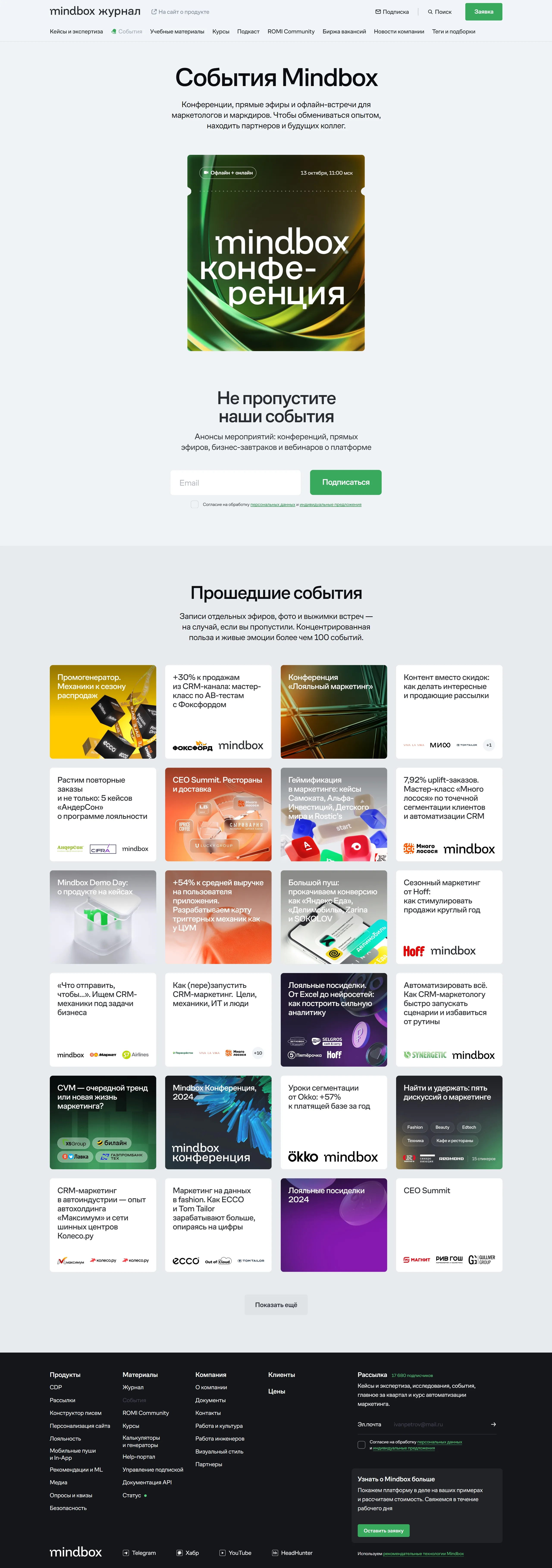 Блог Mindbox, тематика — Мероприятия, SaaS, цвета — Белый, Черный, стиль — Корпоративный, типографика — Без засечек