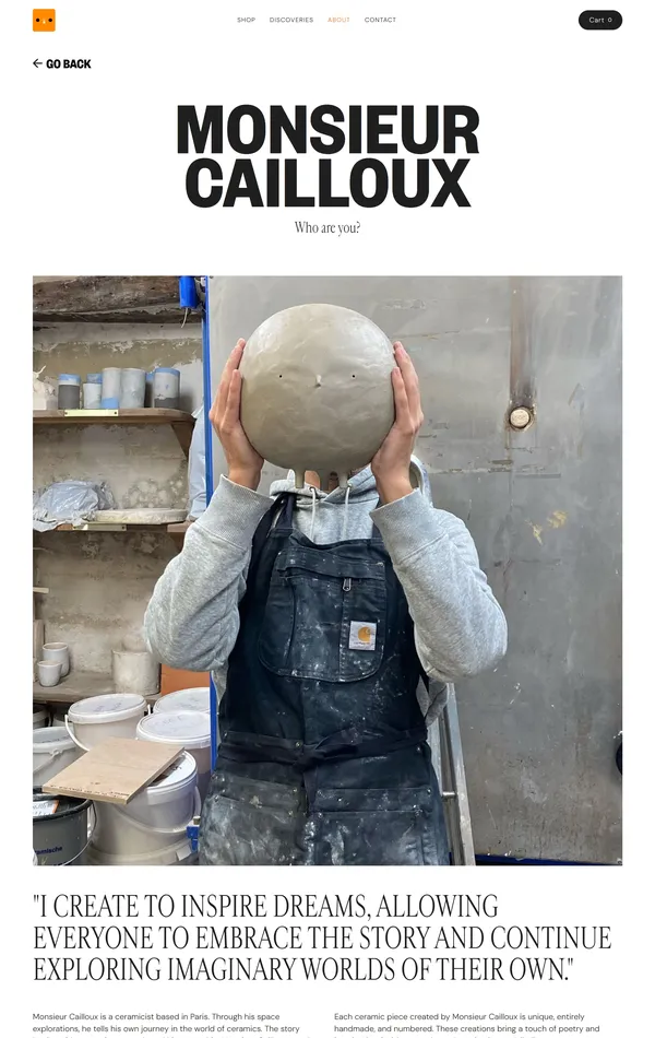 Monsieur Cailloux — современный керамический художник из Парижа, предлагающий уникальные изделия и ограниченные серии, вдохновленные увлекательными историями своего племени.