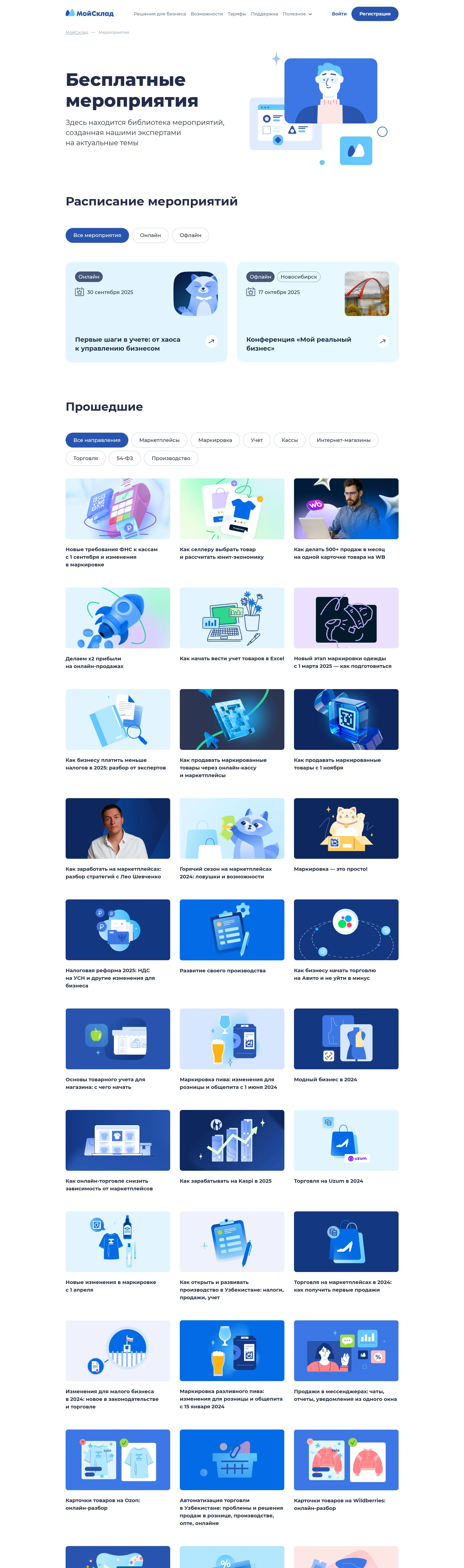 Блог МойСклад, тематика — Мероприятия, цвета — Белый, Серый, стиль — Корпоративный, типографика — Без засечек