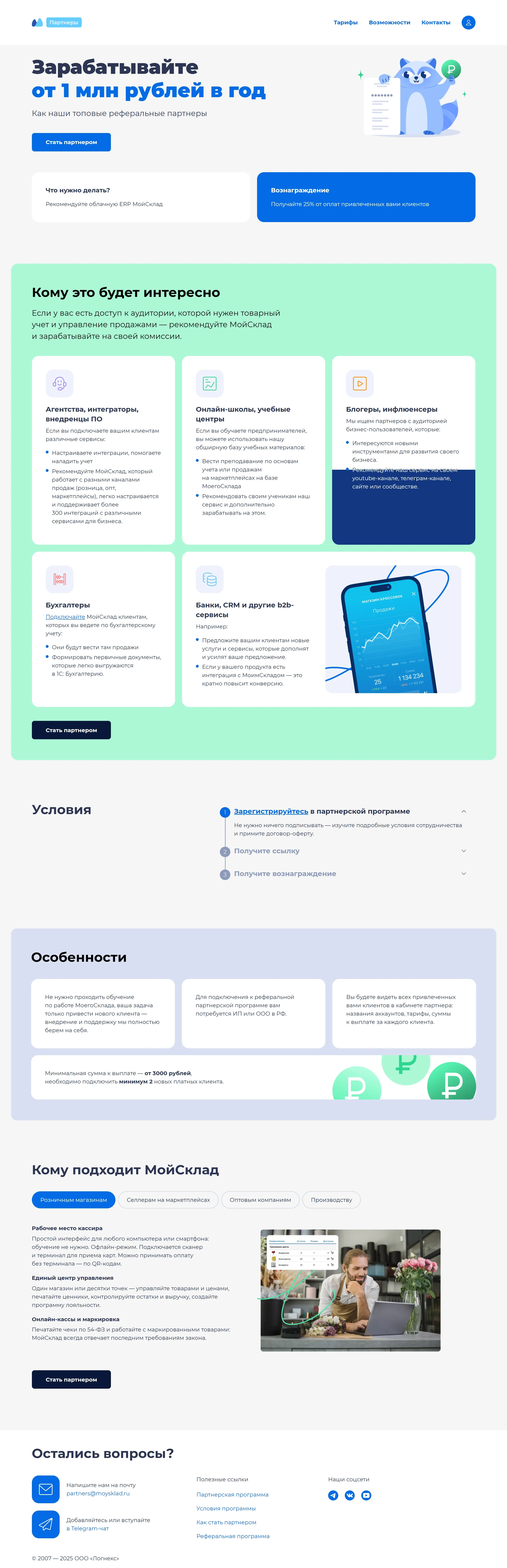 Многостраничный сайт МойСклад, тематика — SaaS, цвета — Белый, стиль — Корпоративный, типографика — Без засечек