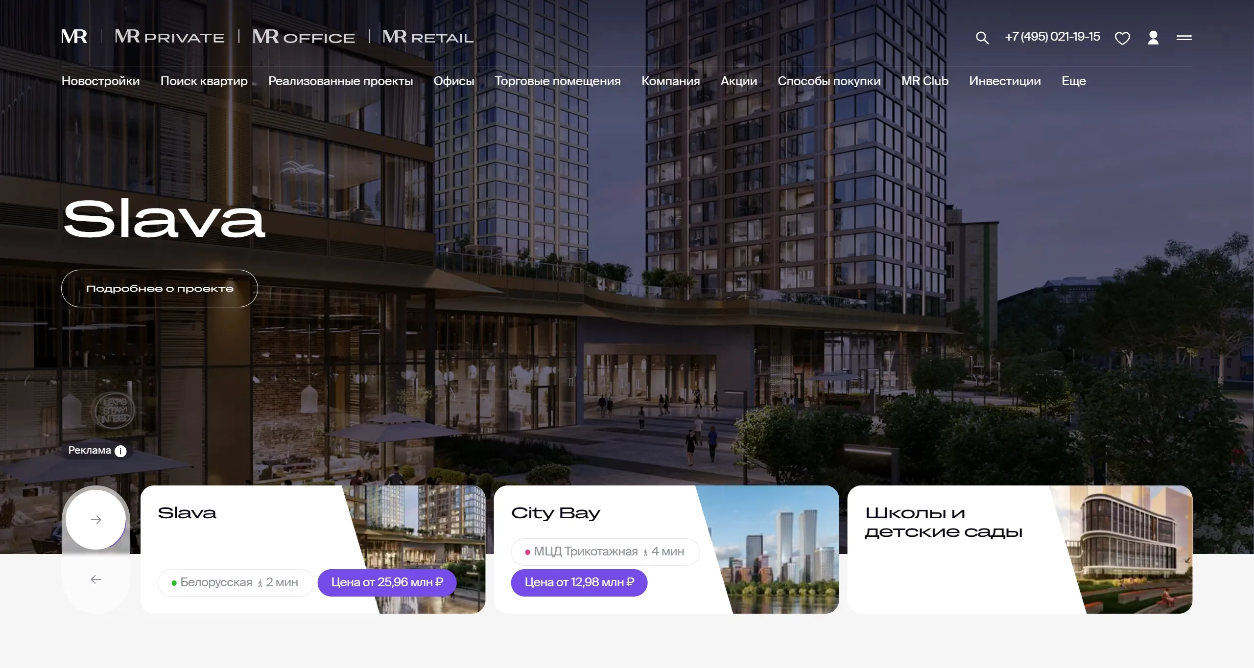 Секция «Первый экран» с сайта https://www.mr-group.ru/, тематика — Строительство, Недвижимость, цвета — Белый, Черный, Серый, стиль — Корпоративный, типографика — Без засечек