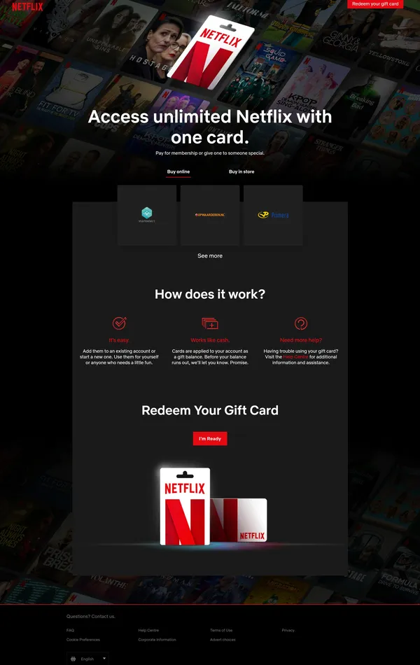 Секция «Призыв к действию» с сайта https://www.netflix.com/nl-en/, тематика — Развлечения, цвета — Черный, стиль — Корпоративный, типографика — Без засечек