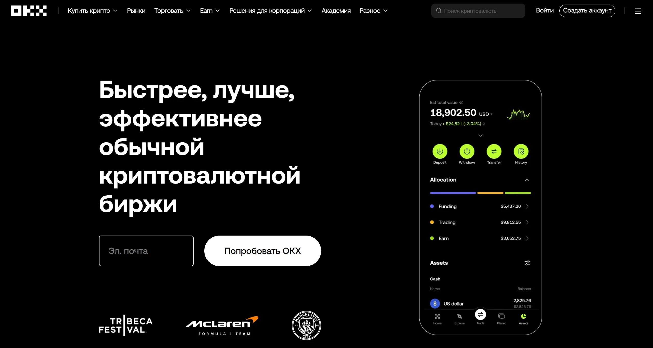 Ведущая криптовалютная биржа, где можно покупать BTC, ETH, XRP и другие криптовалюты, а также изучать Web3 и инвестировать в DeFi и NFT.