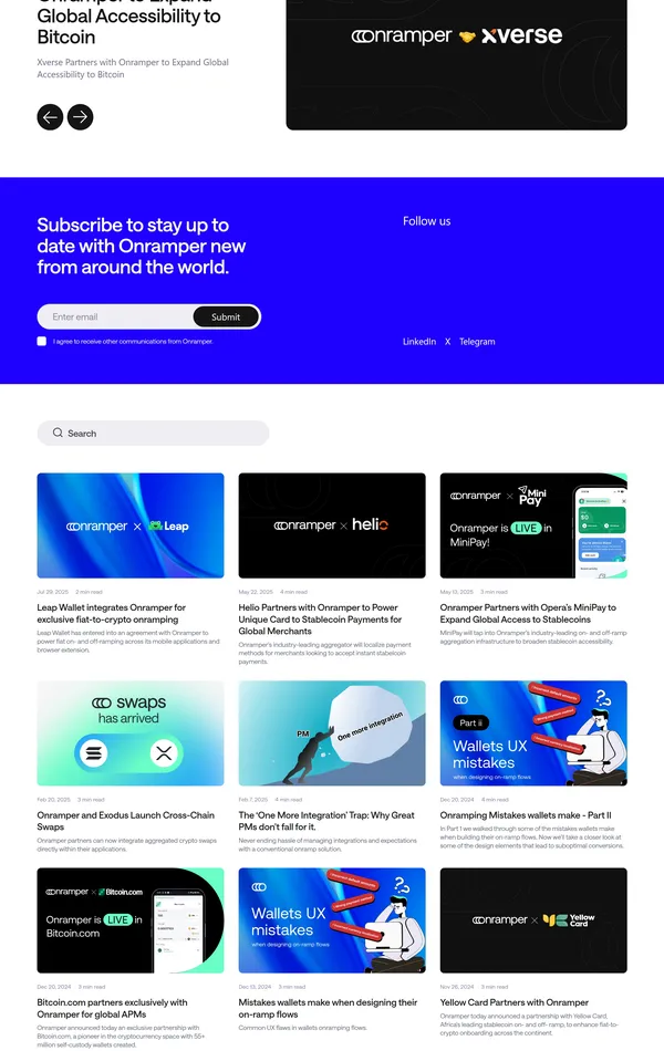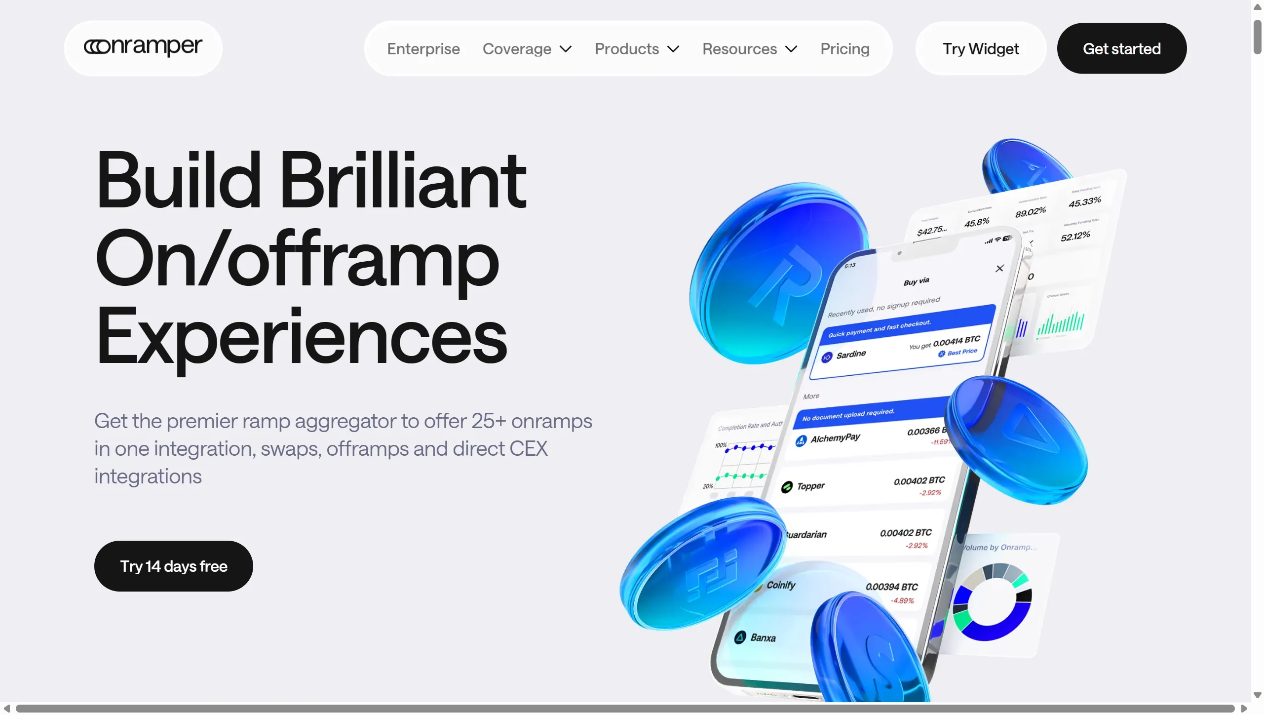 Компания предлагает интеграцию более чем 25 крипто-рамп и 130 методов оплаты, позволяя пользователям легко и с низкими комиссиями покупать криптовалюту. Onramper фокусируется на предоставлении глобального охвата для своих решений.
