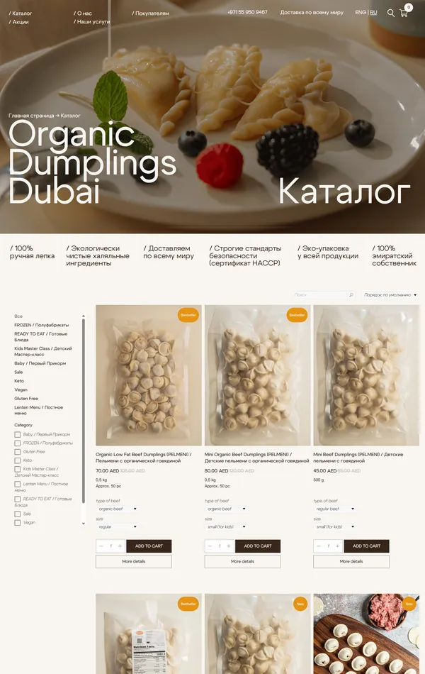 Компания предлагает замороженные халяльные полуфабрикаты и готовые блюда, изготовленные вручную из экологически чистых премиальных продуктов, с доставкой по всему миру.