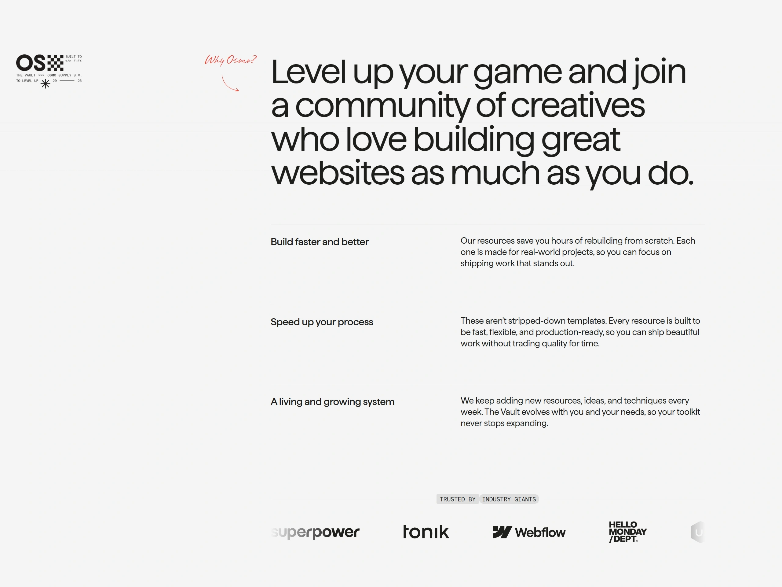 Платформа, предоставляющая доступ к инструментам и ресурсам для веб-разработчиков, включая элементы, техники и код для создания award-winning работ. Osmo предлагает обширный набор учебных материалов и ресурсов для креативных разработчиков.