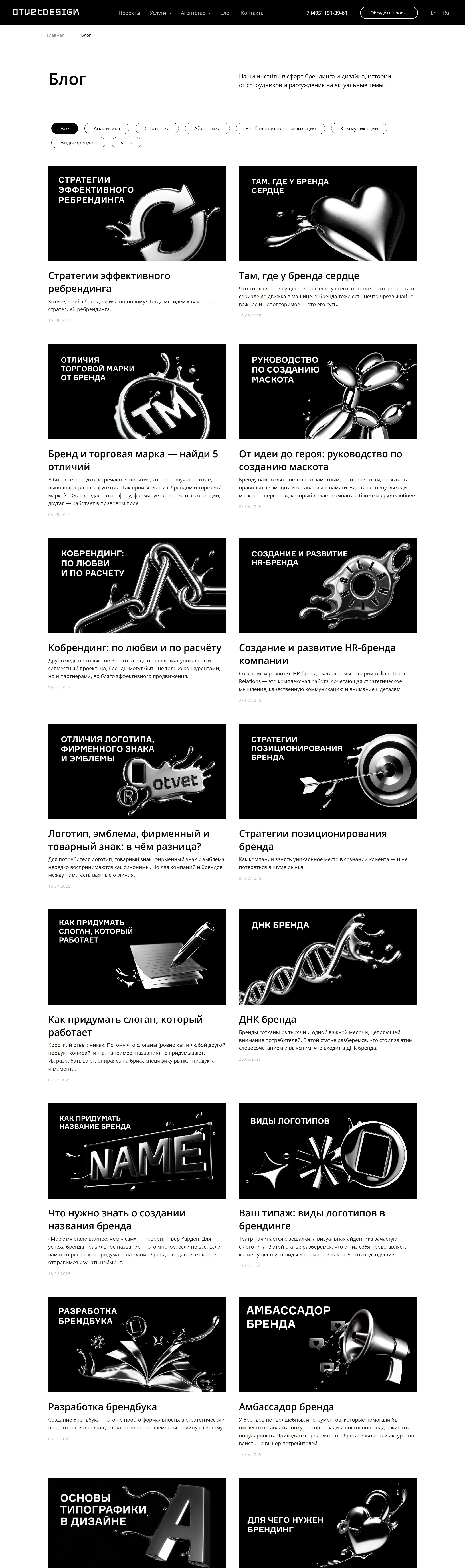 Брендинговое агентство полного цикла, которое занимается созданием и продвижением корпоративных и потребительских брендов, имеющее более 150 профессиональных наград и высокую экспертизу в области брендинга.
