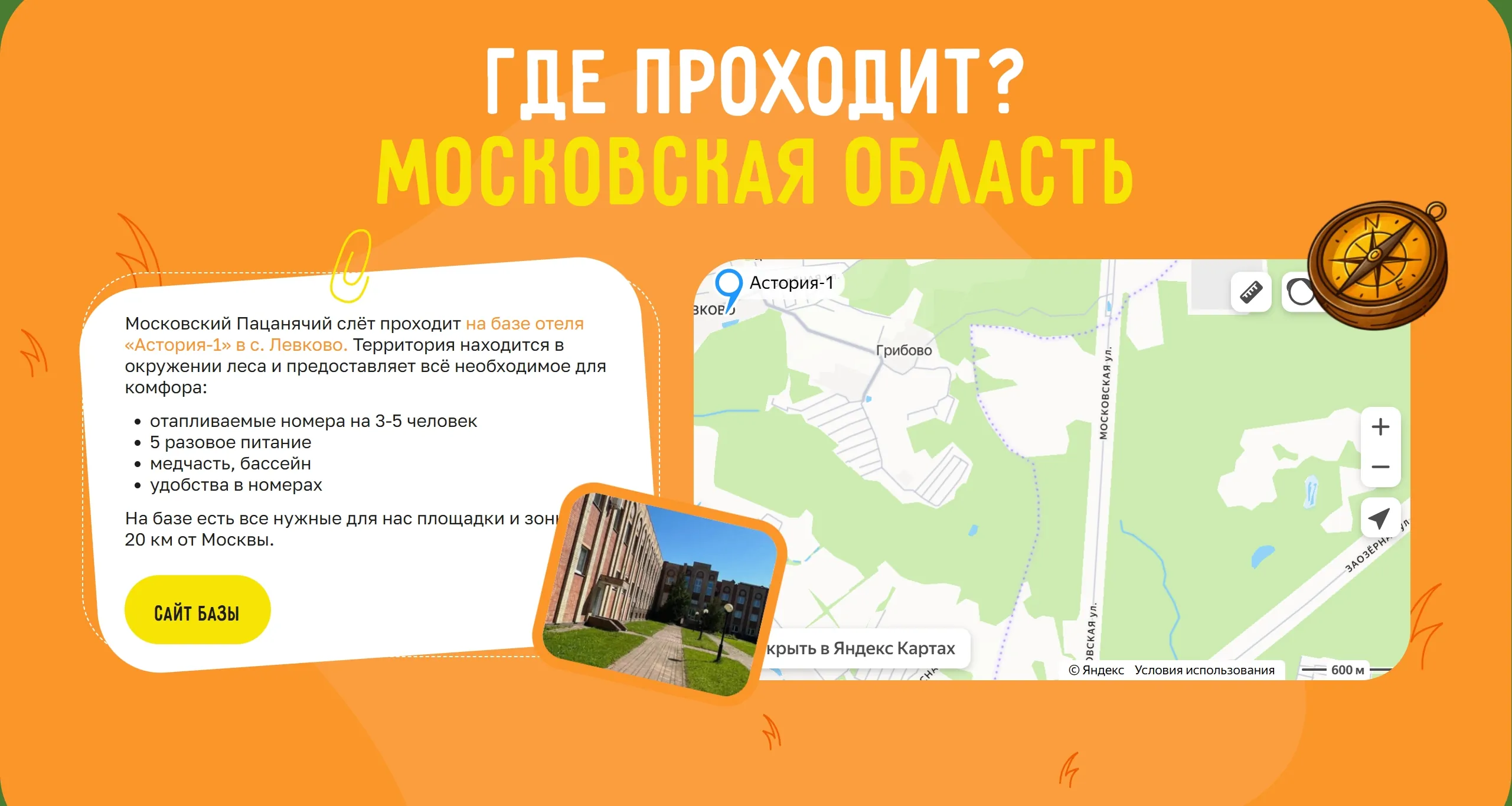 Место, где предлагаются приключения для мальчиков от 8 до 14 лет, включающие прогулки, рыбалку и оффлайн игры, а также возможности для изобретательства и командного взаимодействия. Компания предоставляет слёты на выходные и в каникулярное время с 2016 года.
