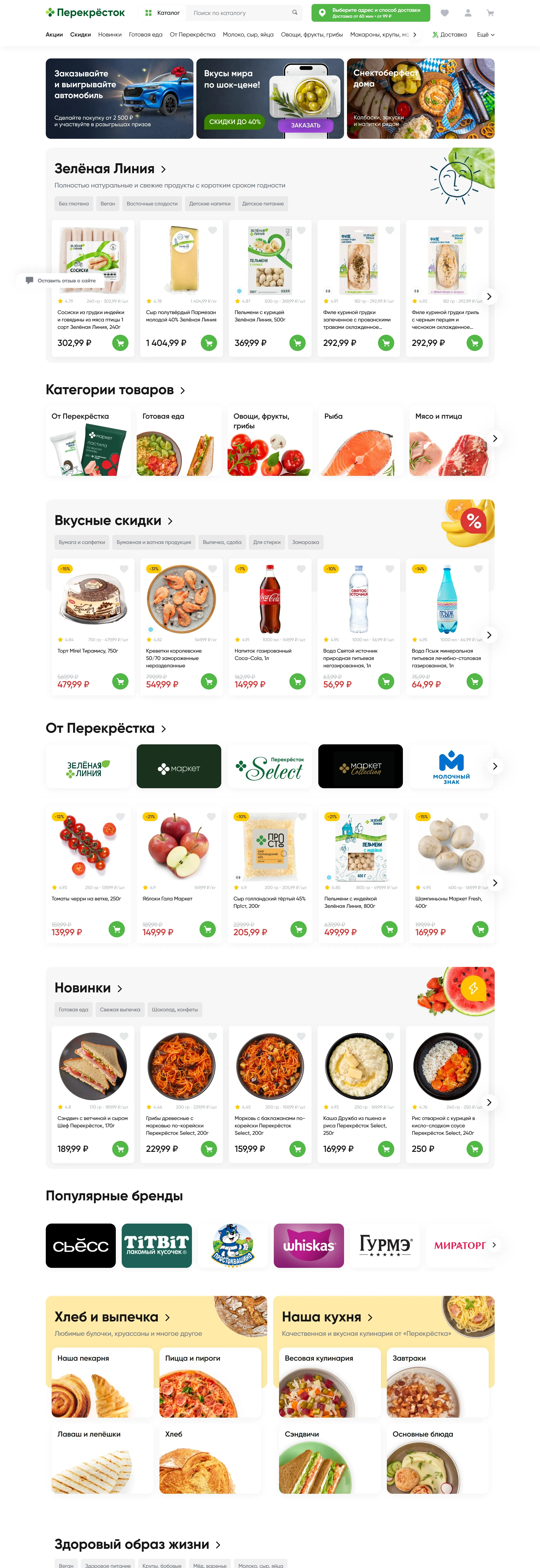 Секция «О продукте» с сайта https://www.perekrestok.ru/, тематика — Интернет-магазин, цвета — Белый, Черный, Серый, стиль — Корпоративный, типографика — Без засечек