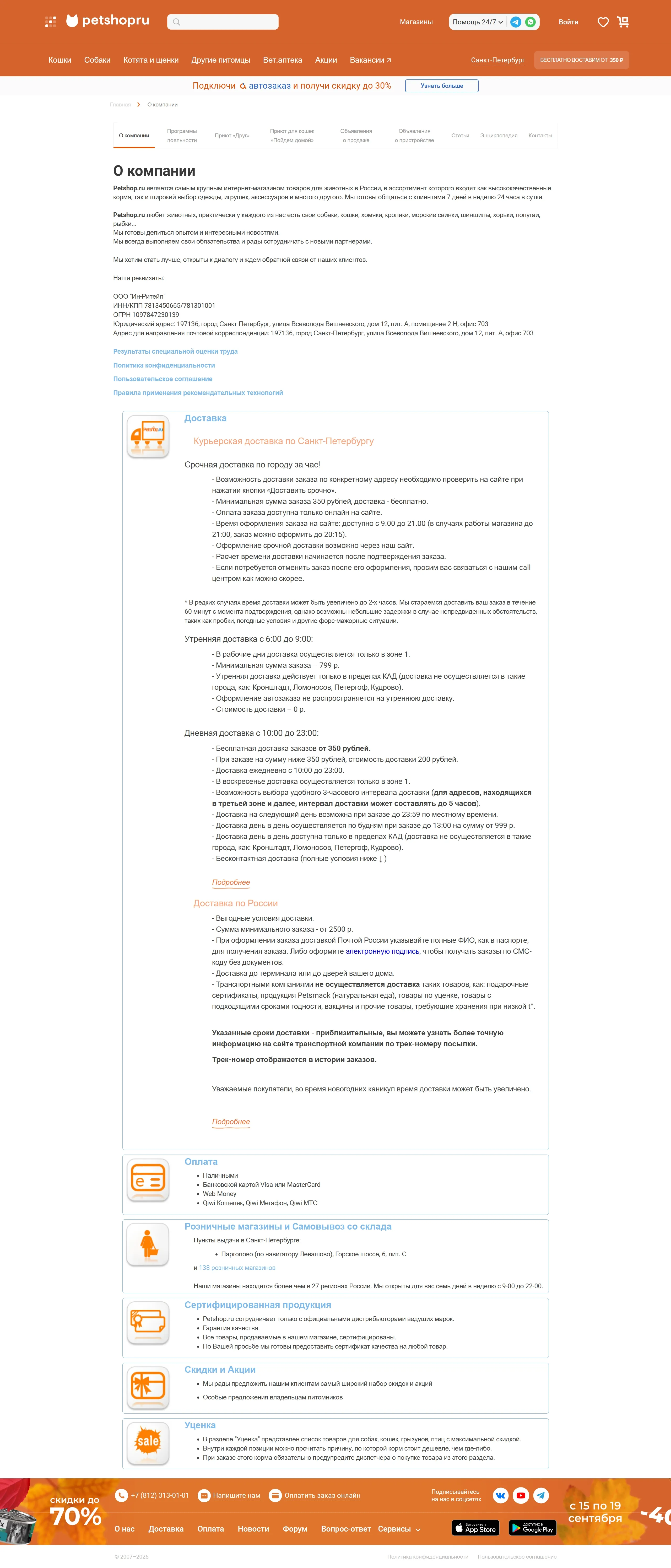 Страница о компании Petshop, тематика — Интернет-магазин, Домашние животные, цвета — Белый, стиль — Корпоративный, типографика — Без засечек