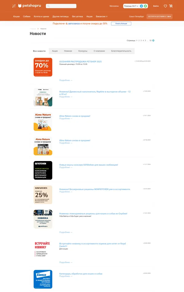 Новости Petshop, тематика — Домашние животные, цвета — Белый, стиль — Корпоративный, типографика — Без засечек