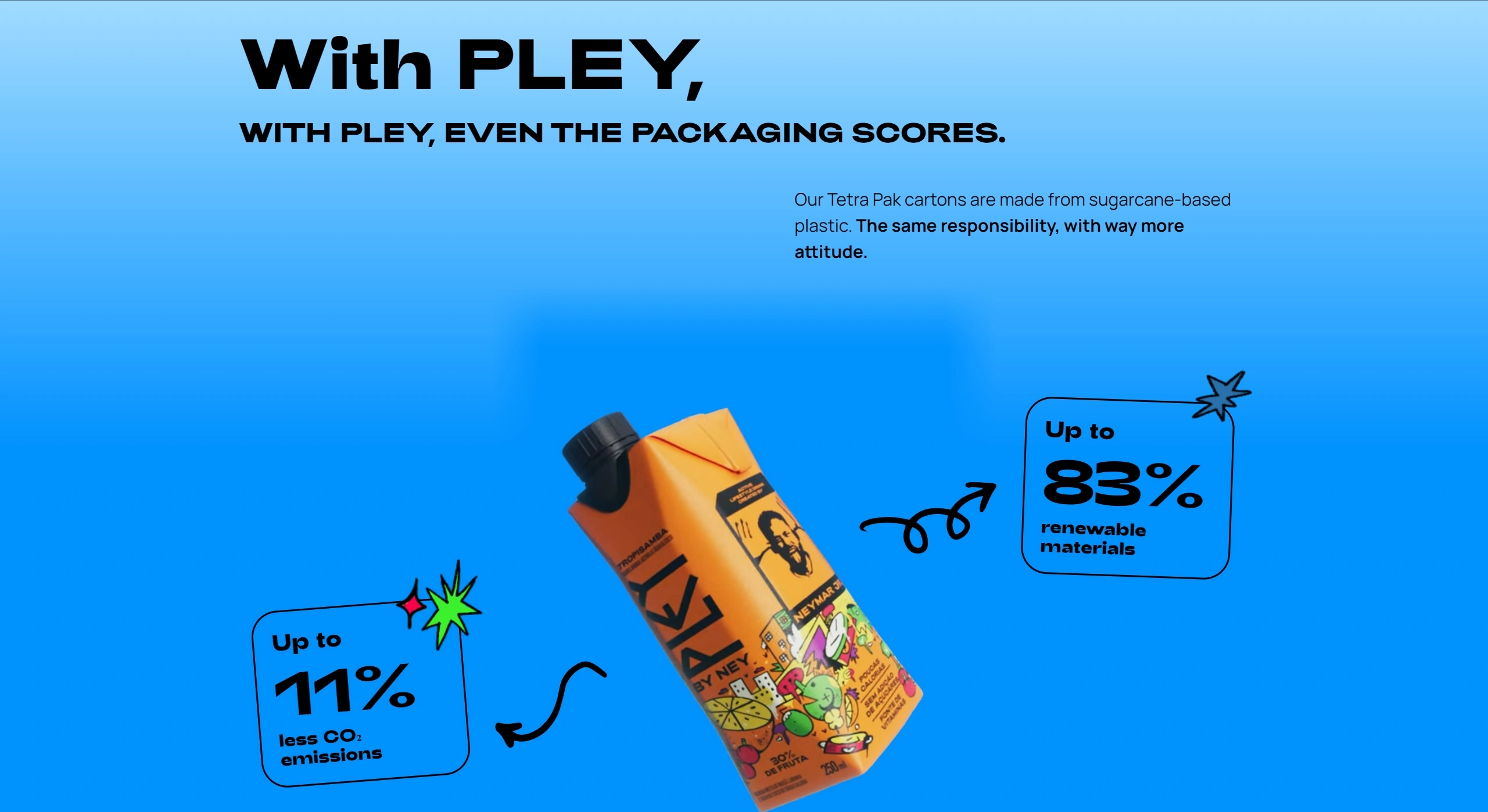 Pleybyney is a healthy beverage associated with Neymar Jr., featuring tropical flavors, vitamins, and zero sugar, aimed at promoting a light and active lifestyle. It encapsulates the vibrant spirit of Brazil.
