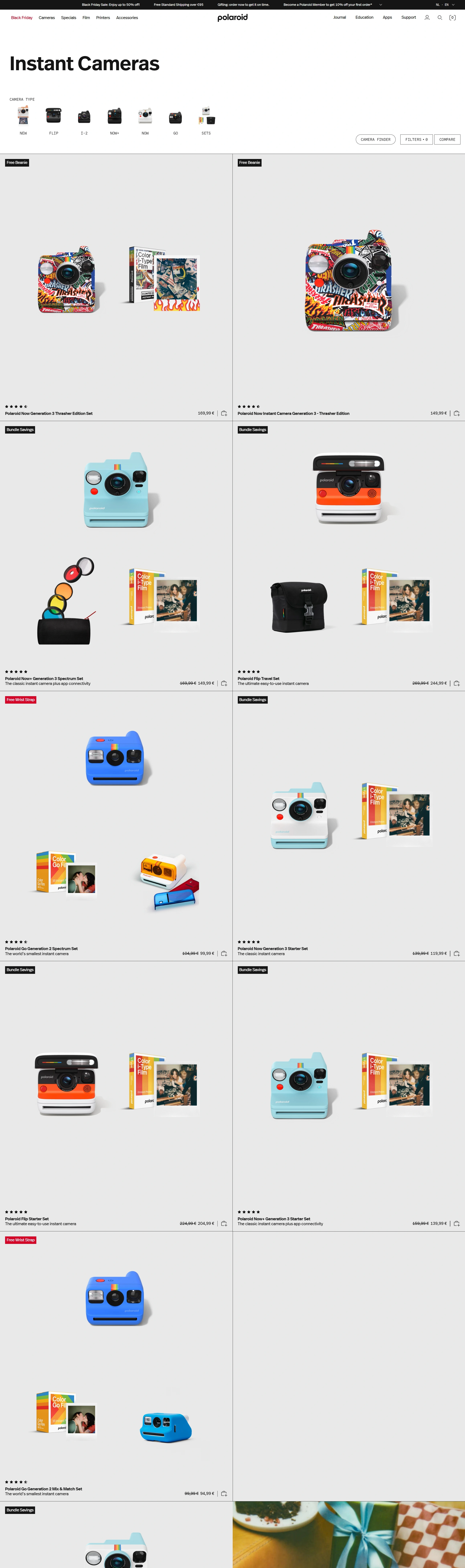 Компания предлагает эксклюзивные предложения на свои мгновенные камеры, идеальные для запечатления воспоминаний во время праздников. В рамках акции Black Friday предлагается скидка до 50% на продукцию.