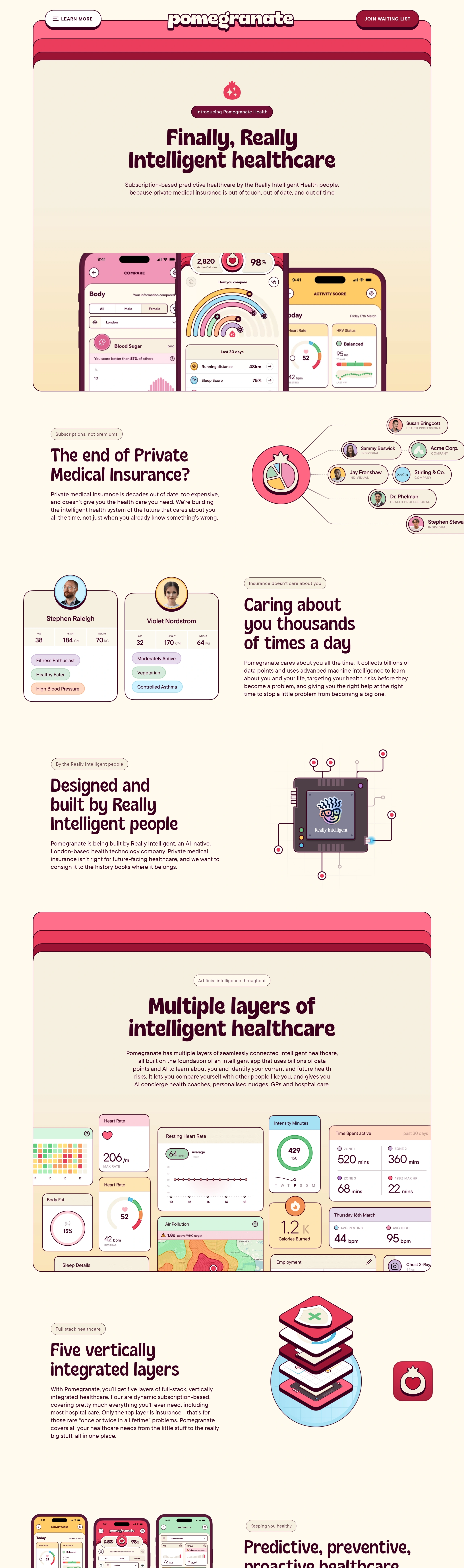 Pomegranate is an intelligent subscription-based predictive healthcare solution that aims to provide continuous care, moving beyond traditional private medical insurance.