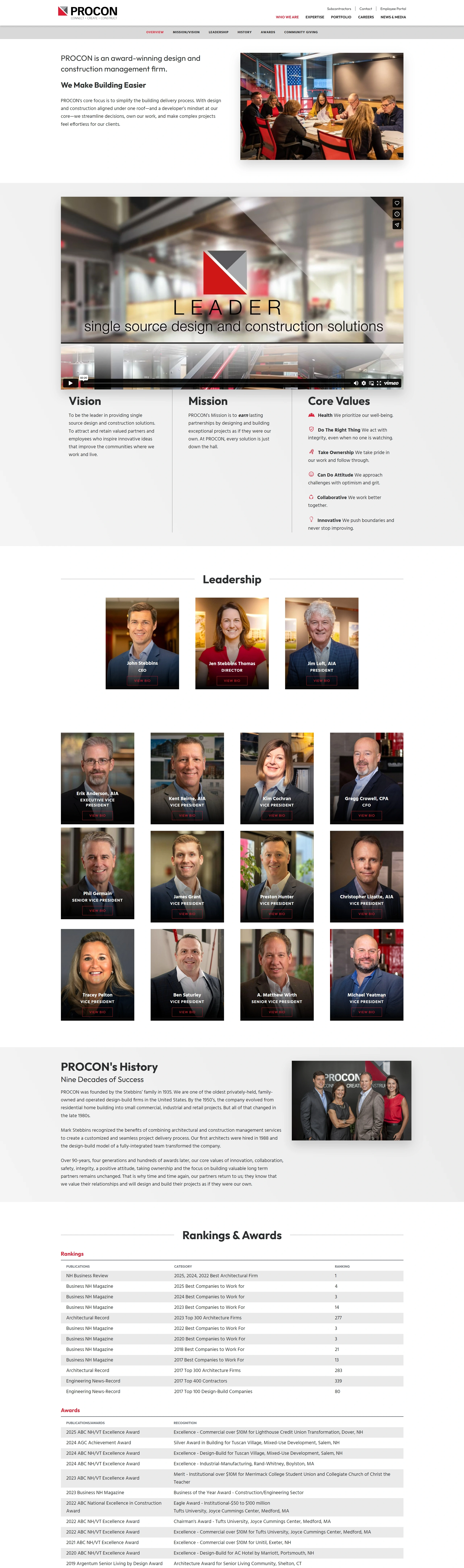 Страница о компании Proconinc, тематика — Строительство, цвета — Белый, Серый, стиль — Корпоративный, типографика — Без засечек
