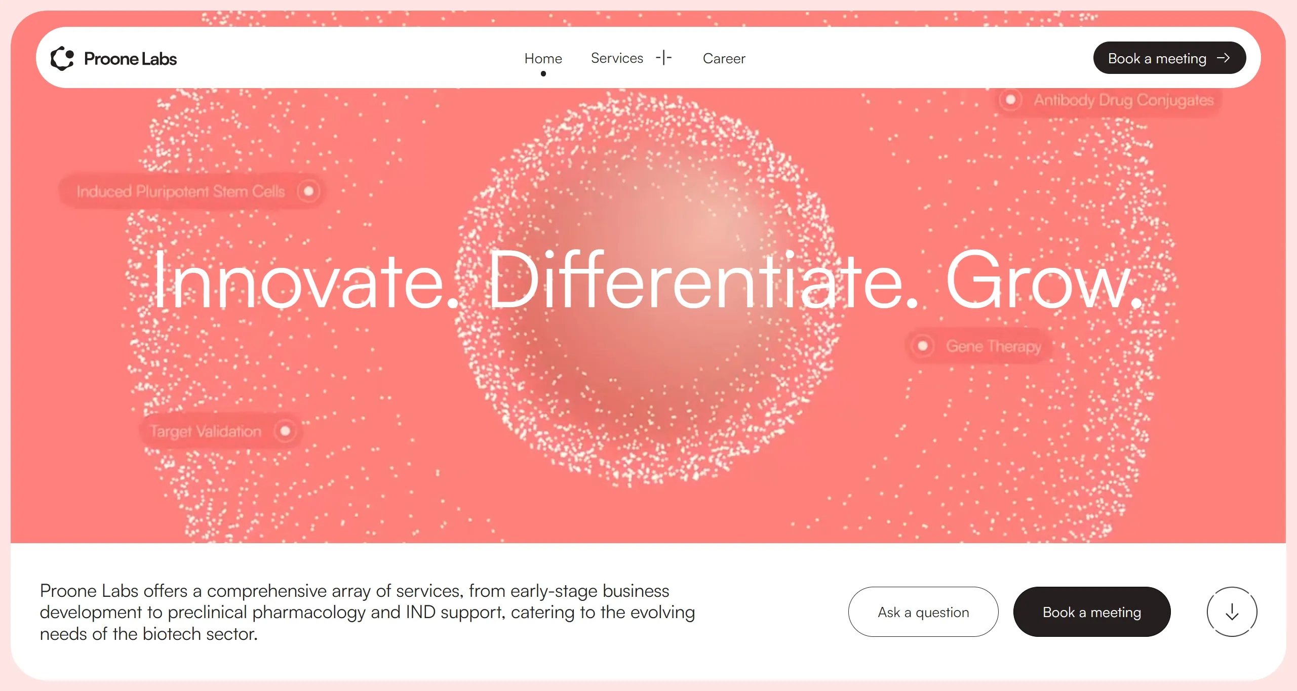 Компания предлагает широкий спектр услуг, начиная от разработки бизнеса на ранних стадиях до доклинической фармакологии и поддержки IND, отвечая на меняющиеся потребности биотехнического сектора.