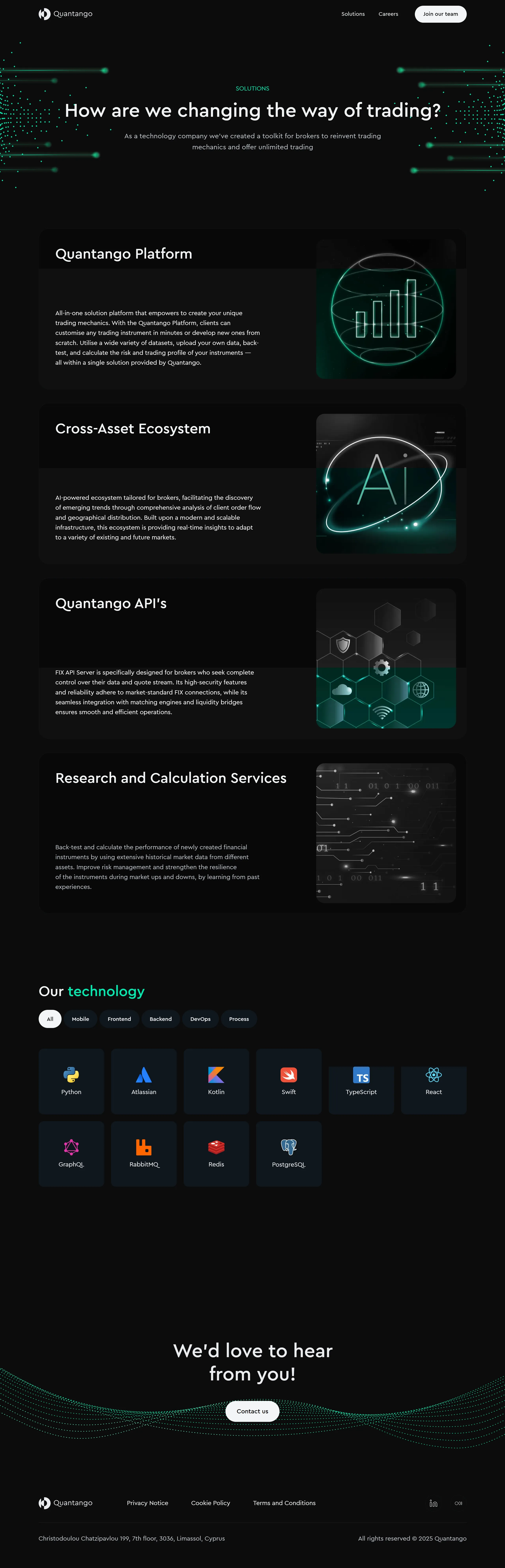 Компания занимается разработкой новых торговых механик, предлагая брокерам неограниченные возможности для торговли. Она стремится создать революционные изменения в сфере финансовых технологий.