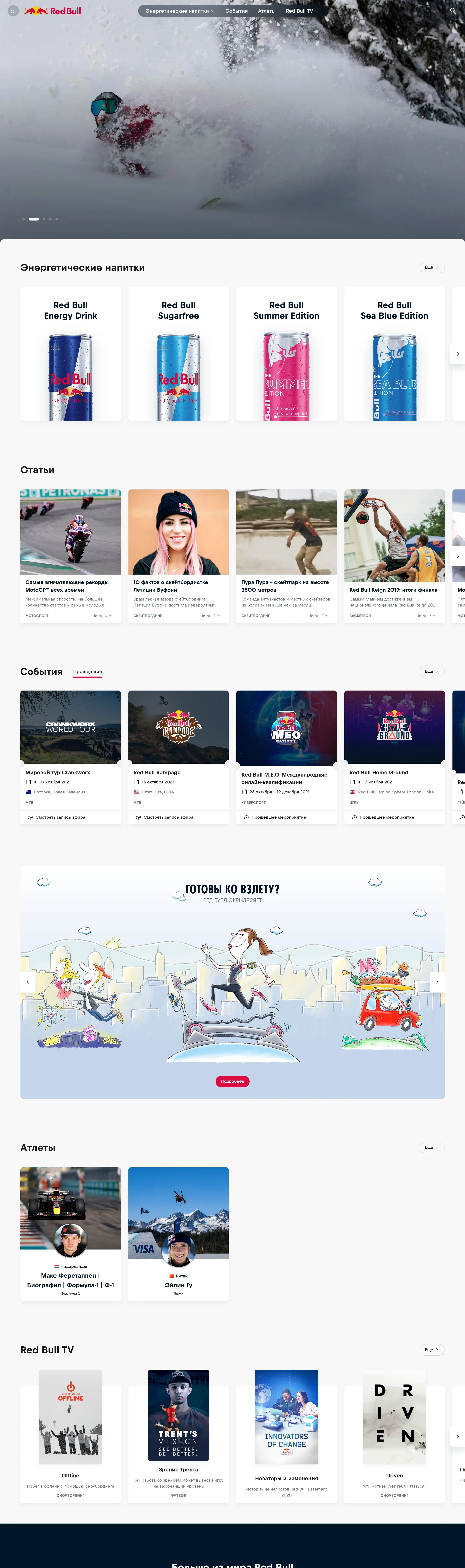 Компания производит энергетические напитки и предлагает разнообразный контент о спортсменах, артистах и событиях, связанных с их продукцией.