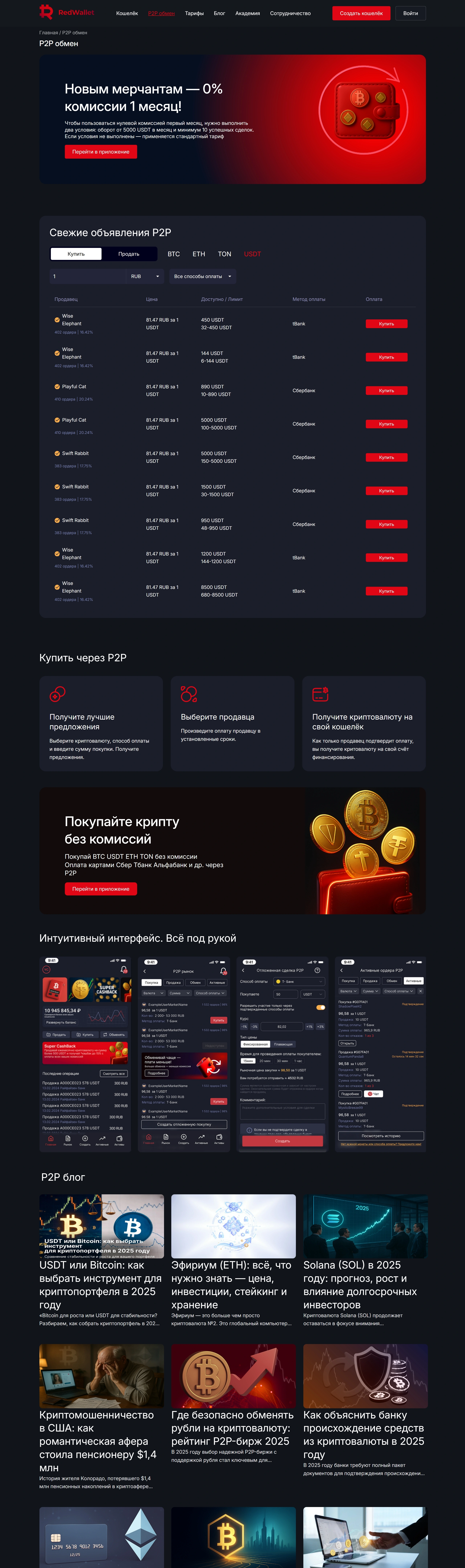 Главная Red Wallet, тематика — Крипто  и блокчейн, цвета — Черный, стиль — Корпоративный, типографика — Без засечек