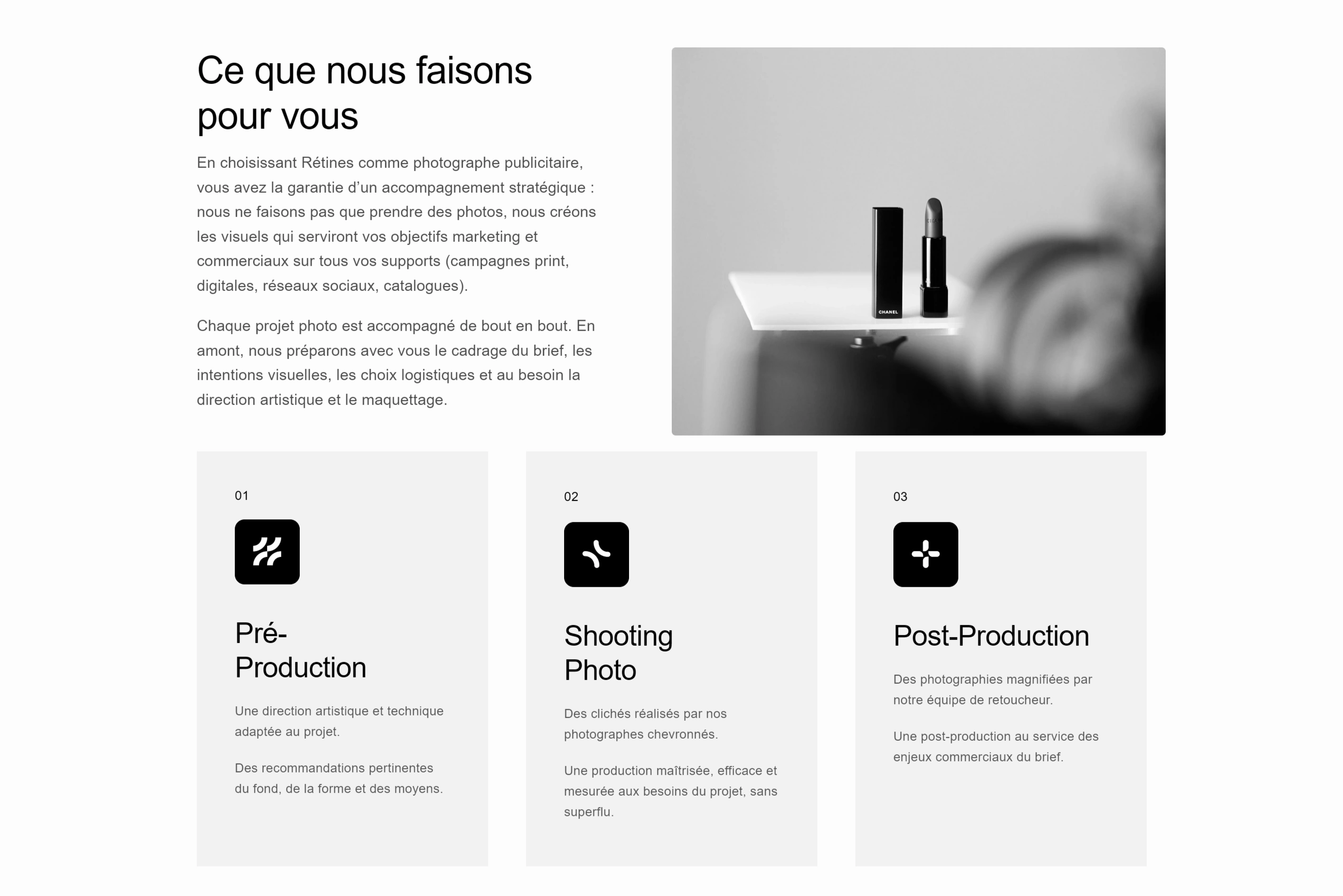 Студия фотографии, специализирующаяся на съемке продуктов, репортажах для бизнеса и корпоративных портретах.