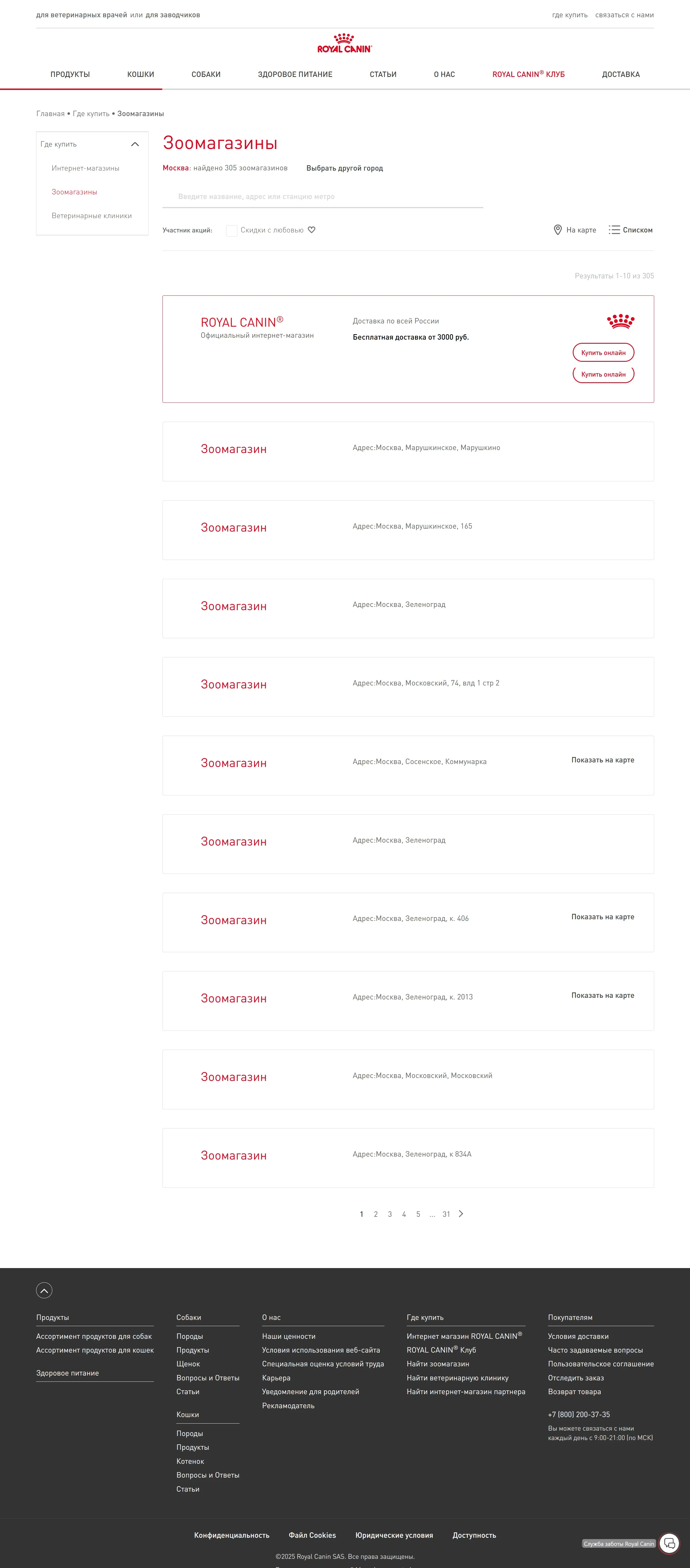 Многостраничный сайт Royal Canin, тематика — Интернет-магазин, Домашние животные, цвета — Белый, стиль — Корпоративный, Минимализм, типографика — Без засечек
