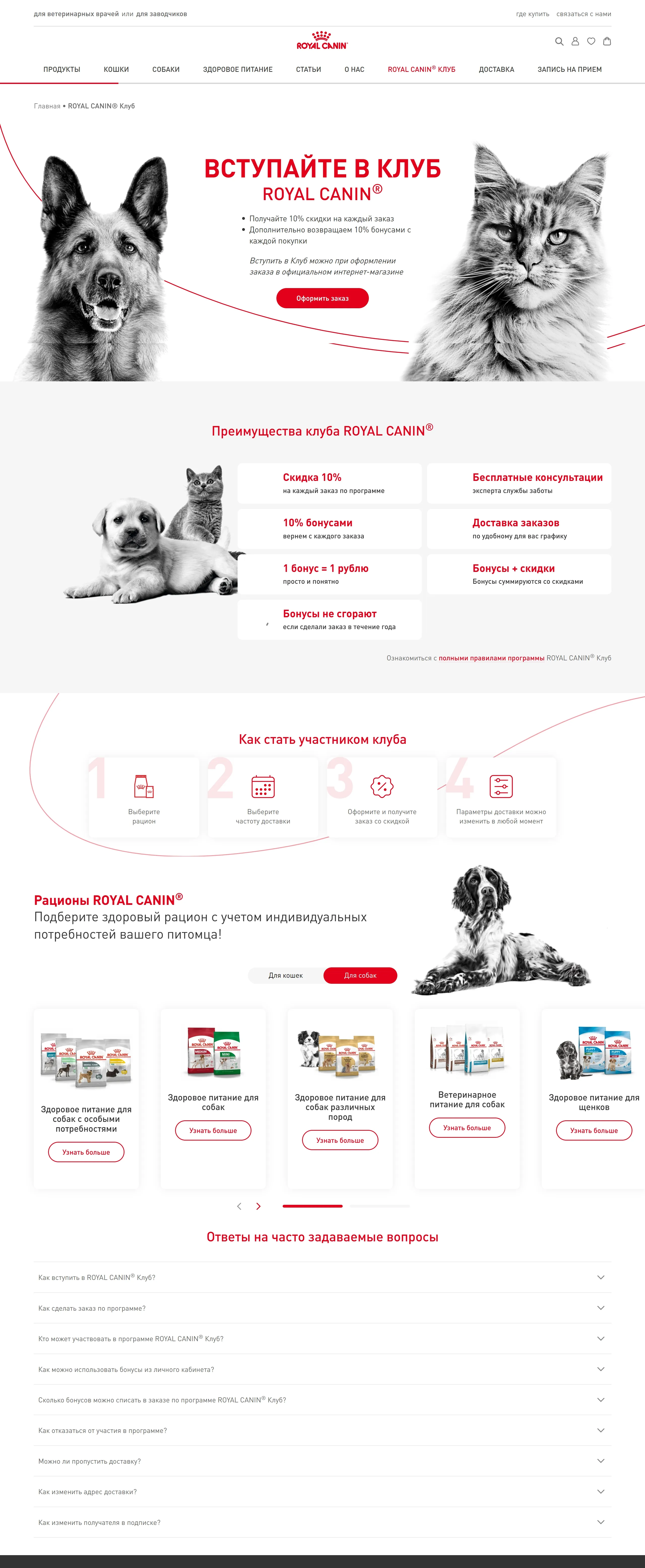 Программа лояльности Royal Canin, тематика — Домашние животные, цвета — Белый, стиль — Корпоративный, Минимализм, типографика — Без засечек