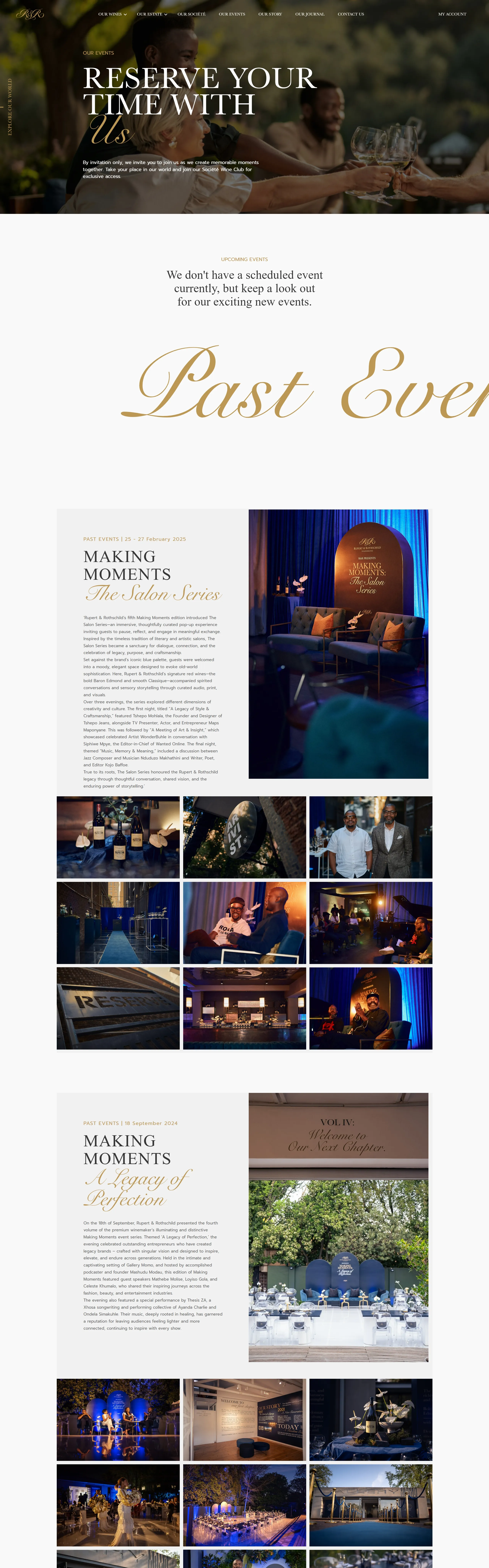 Страница о компании Rupert Rothschild Vignerons, тематика — Еда и напитки, цвета — Белый, Черный, стиль — Классический, Корпоративный, типографика — С засечками, Без засечек