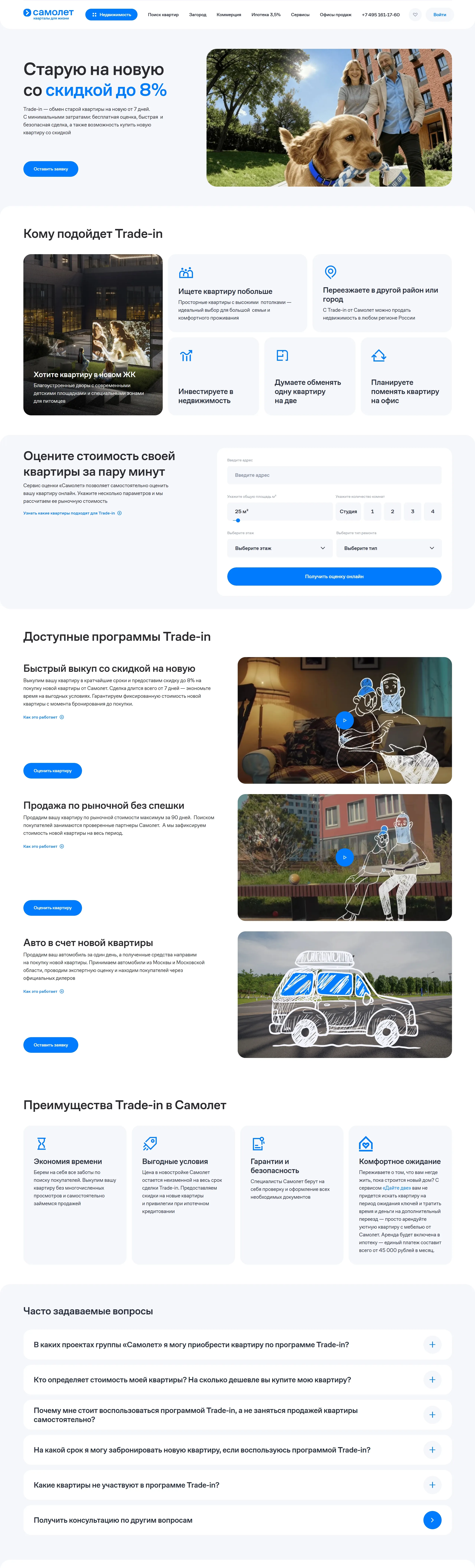 Услуги samolet, тематика — Недвижимость, цвета — Белый, стиль — Корпоративный, типографика — Без засечек