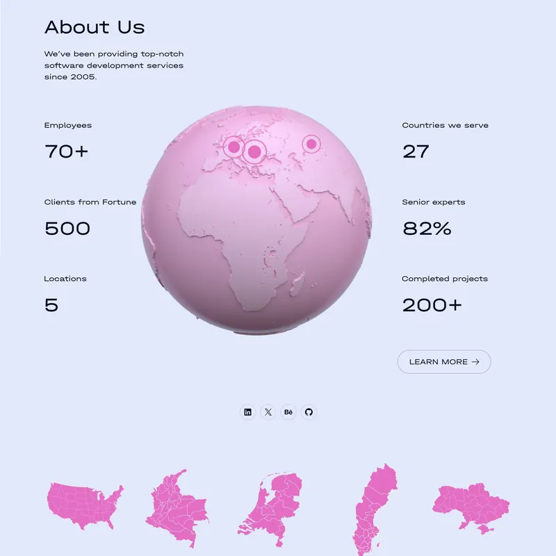 Компания по разработке программного обеспечения, которая пользуется доверием Fortune 500, предлагает создание высококлассных платформ электронной коммерции, пользовательских веб-порталов и приложений для предприятий.