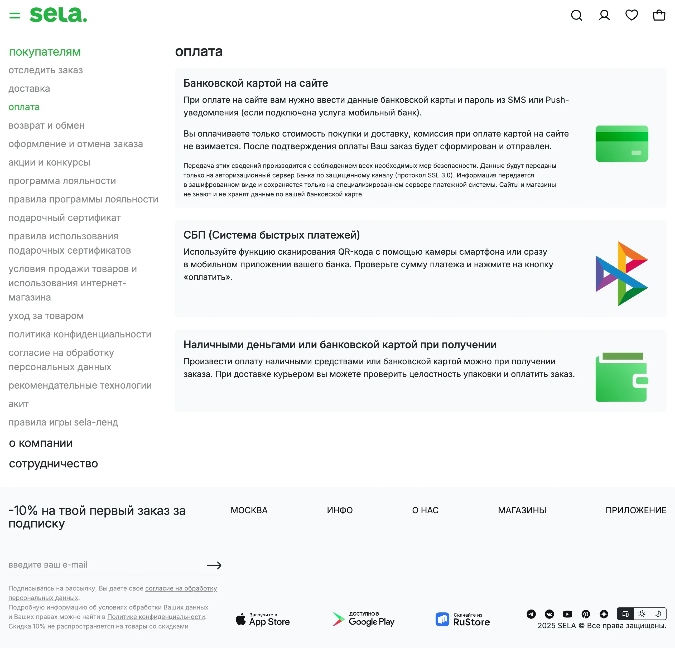 Интернет-магазин SELA предлагает широкий ассортимент одежды для женщин, мужчин и детей, а также информацию о доставке, возврате и программе лояльности.