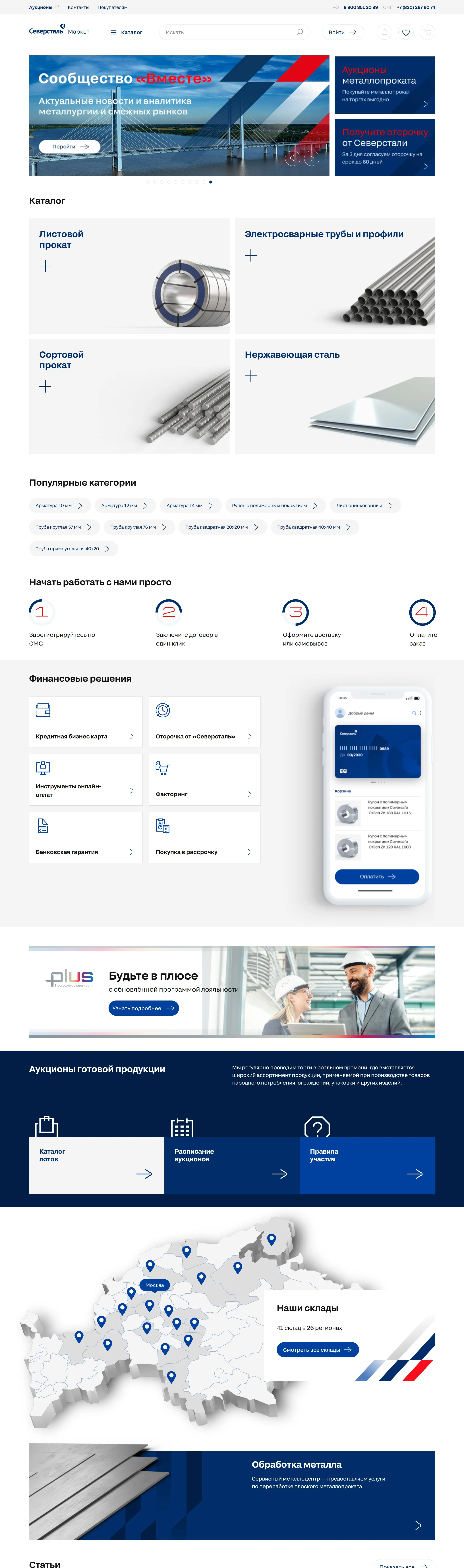 Многостраничный сайт Северсталь, тематика — Производство, цвета — Белый, Черный, стиль — Корпоративный, типографика — Без засечек