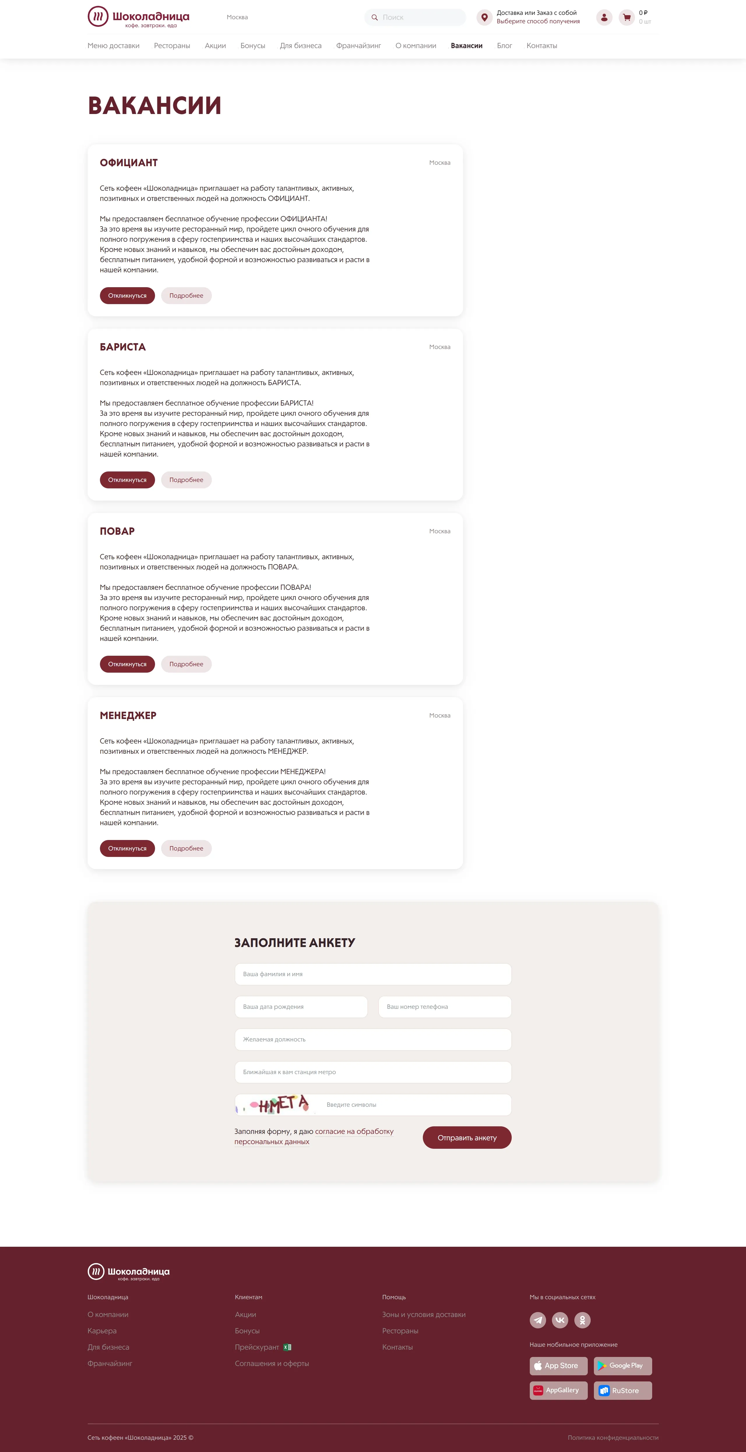 Сеть кофеен, работающая с 1964 года, предлагает любимые блюда и напитки как в заведениях, так и с доставкой на дом.