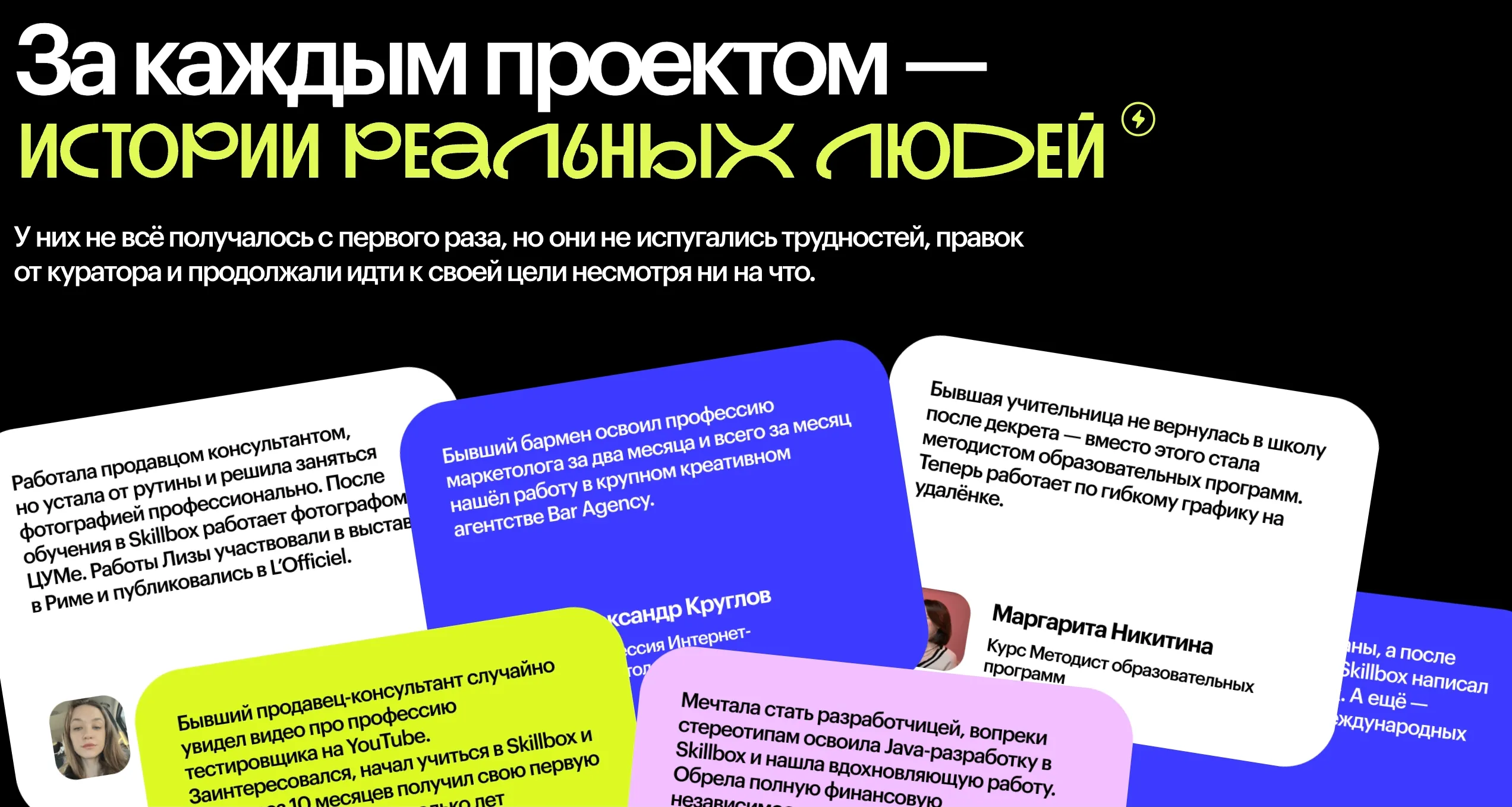 Компания делится проектами и историями студентов, чтобы вдохновить других на преодоление сомнений и осуществление перемен. Практические работы студентов играют важную роль в обучении и развитии их навыков.