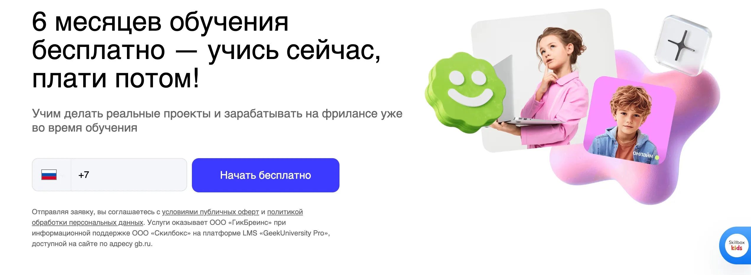 Обучает детей от 7 до 16 лет онлайн, предлагая курсы по программированию, нейросетям, дизайну и финансовой грамотности с поддержкой наставников и проектной практикой.