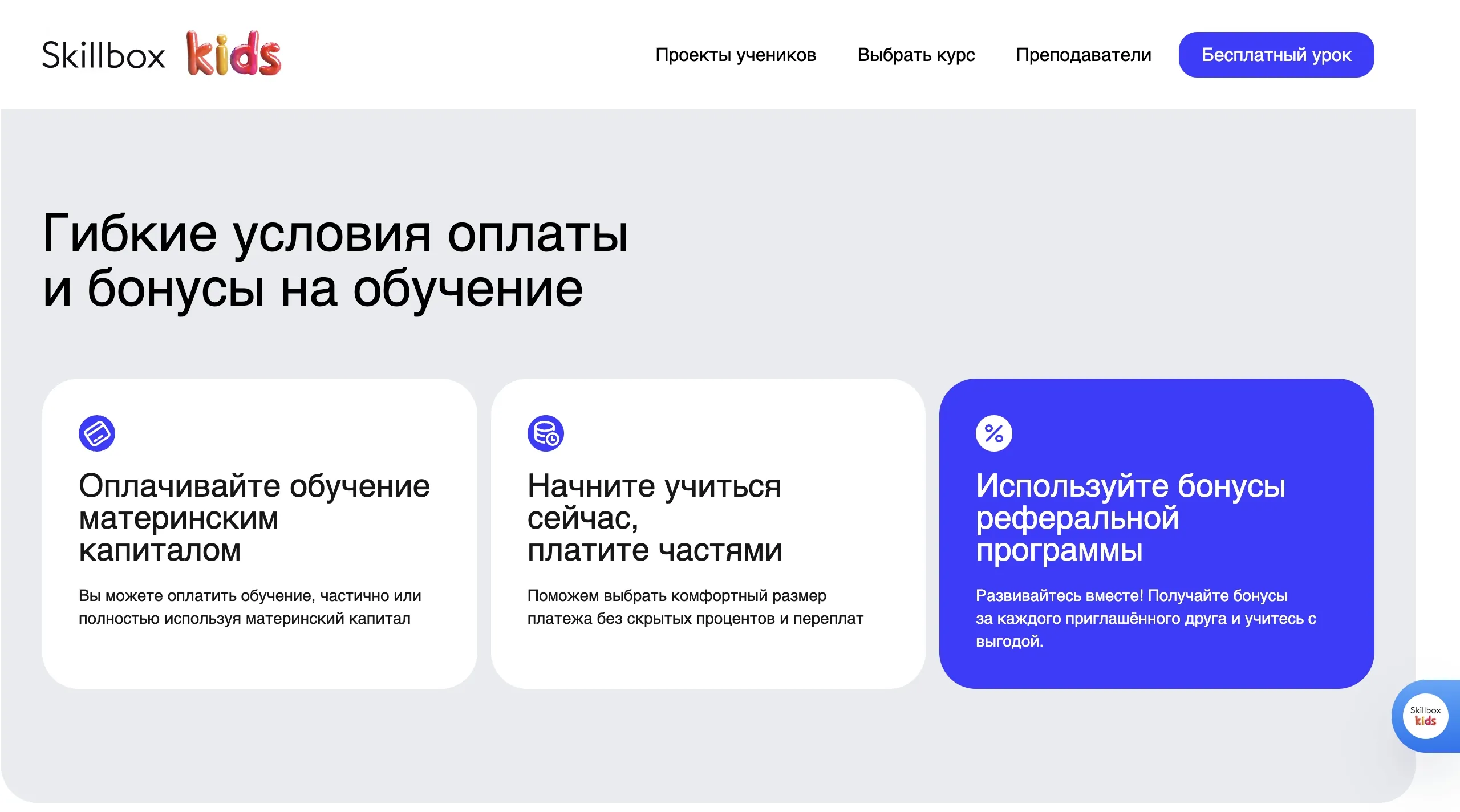 Обучают детей 7–16 лет онлайн, предлагая курсы по программированию, нейросетям, дизайну и заработку, с наставниками и проектной практикой.