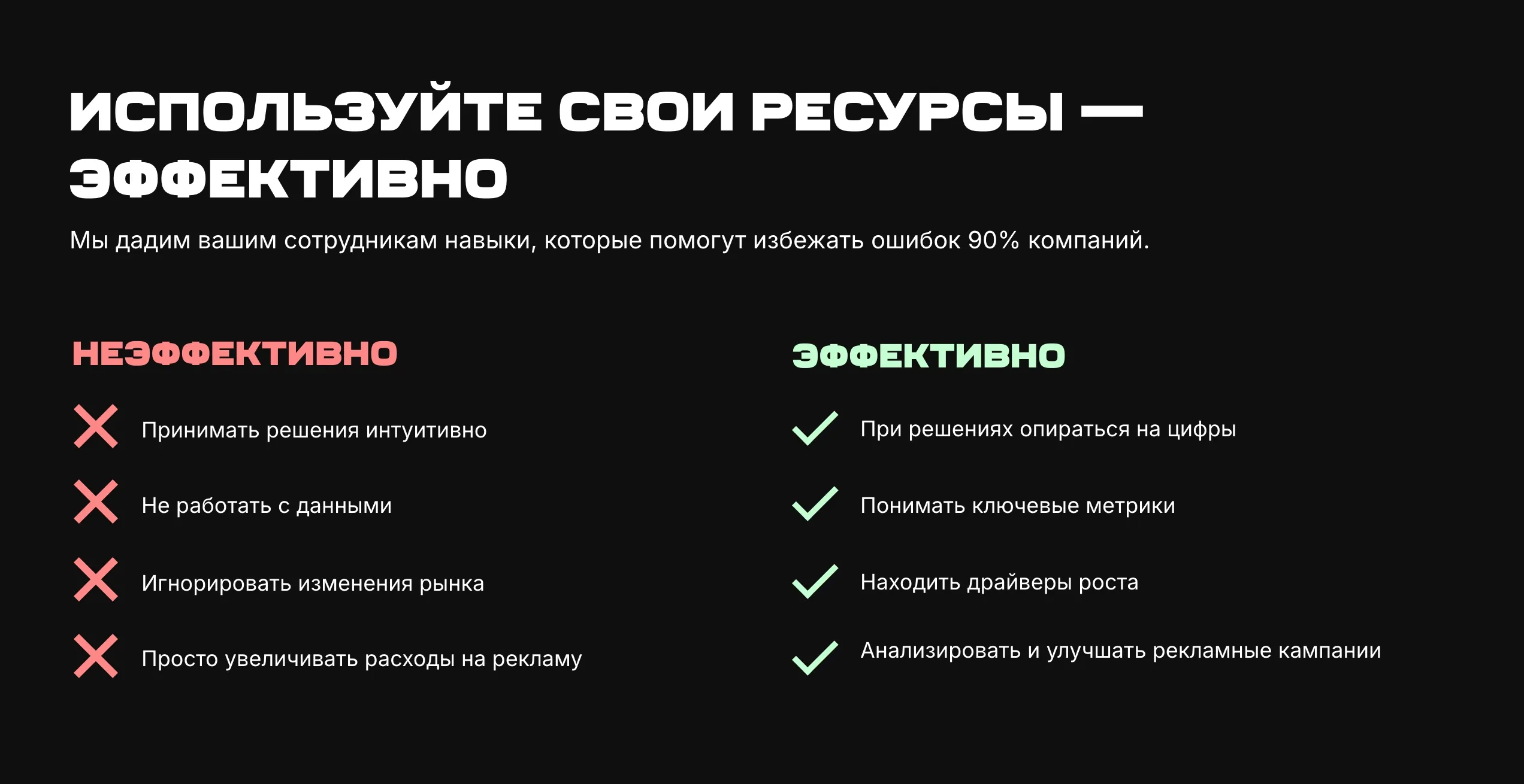 Компания предлагает корпоративное обучение для развития сотрудников с акцентом на Data Science и аналитику через эффективные образовательные программы.
