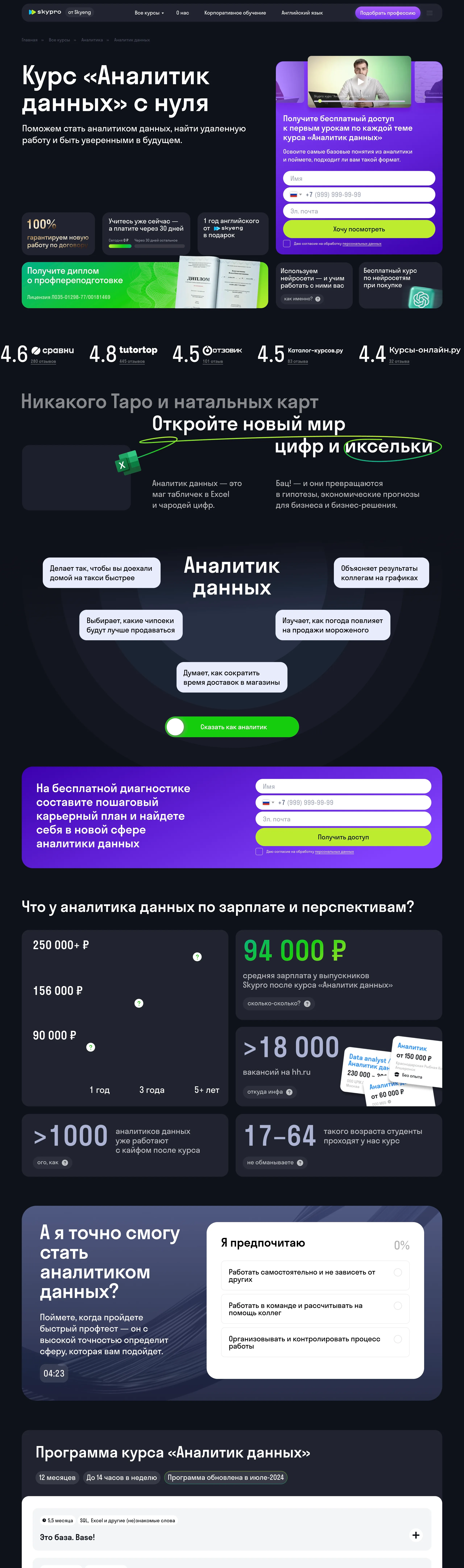 Онлайн-курс, который предлагает обучение профессии аналитика данных с нуля, обеспечивая студентов необходимыми навыками и гарантией трудоустройства.