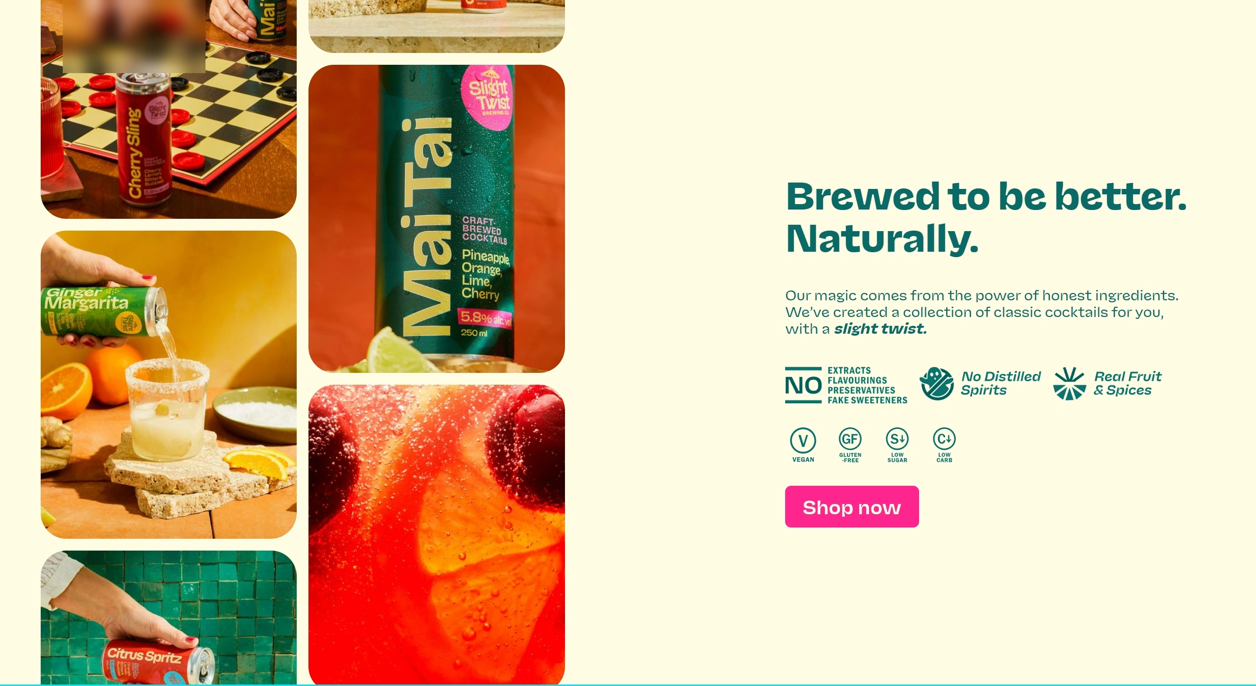 Компания предлагает крафтовые коктейли, приготовленные из натуральных ингредиентов, без дистиллированных спиртов, с использованием реальных фруктов и специй. Их продукция подходит для веганов и людей с ограничениями в питании, таких как глютеновая непереносимость.