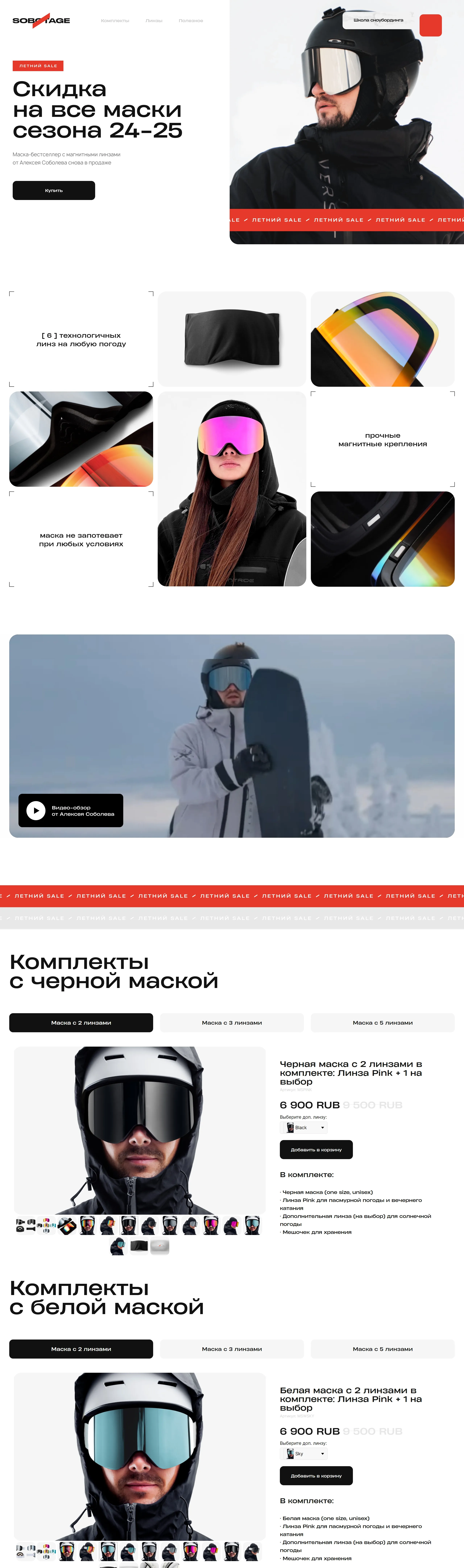 Бренд предлагает коллекцию масок и линз для сноубордов, включая популярную маску с магнитными линзами. В рамках весенней распродажи на сезон 24-25 действуют скидки на всю продукцию.
