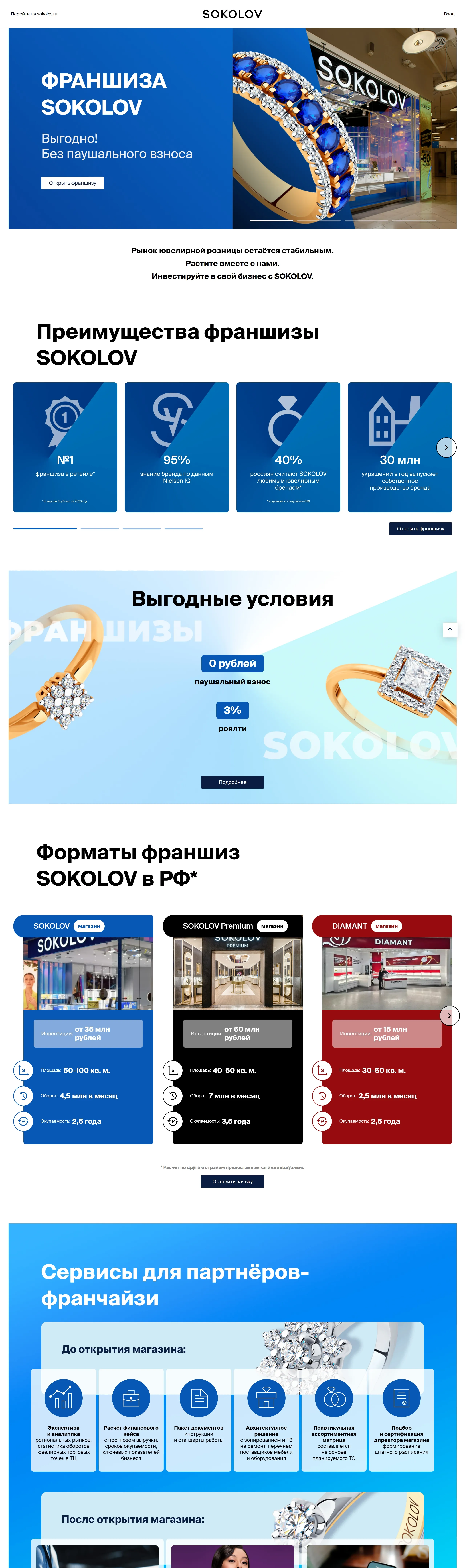 Лендинг Соколов, тематика — Розничная торговля, цвета — Белый, Серый, Синий, стиль — Корпоративный, типографика — Без засечек