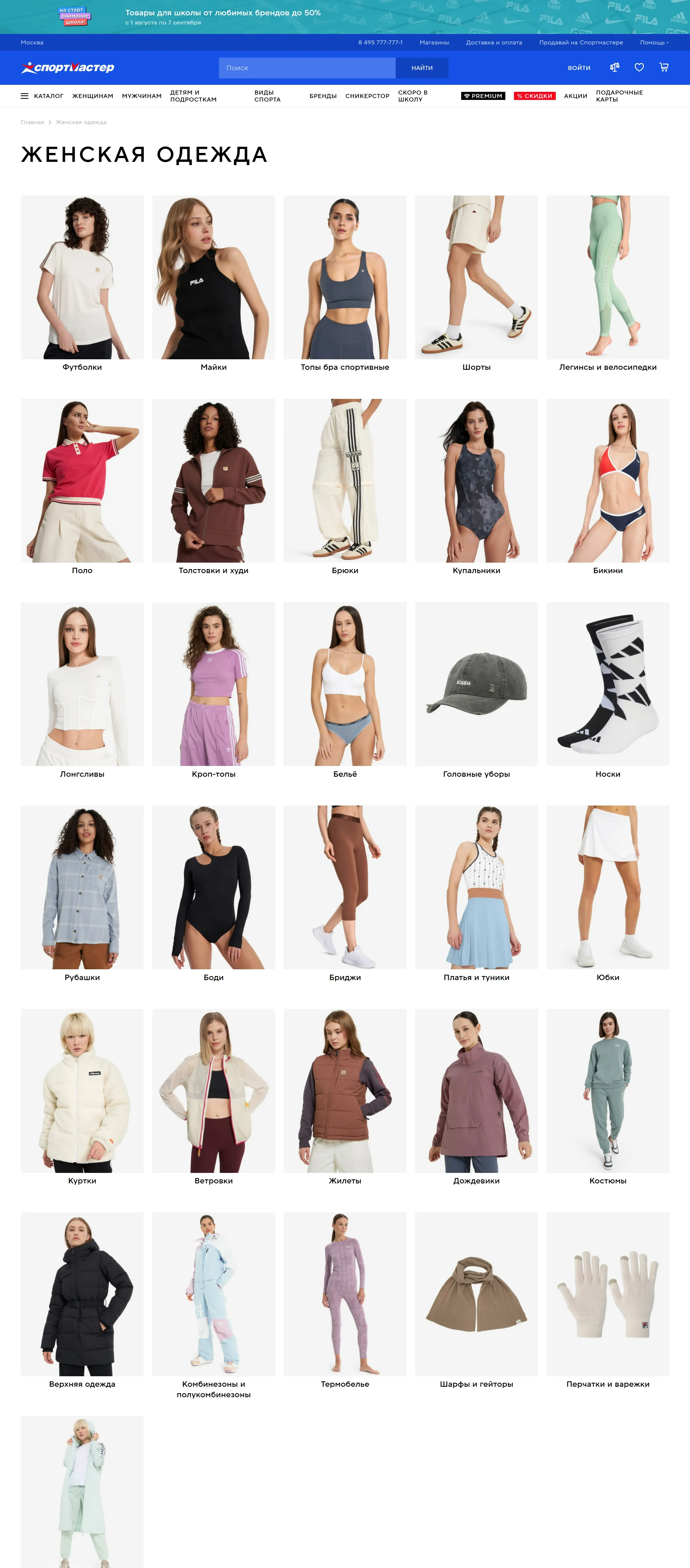 Главная Sportmaster, тематика — Интернет-магазин, цвета — Белый, Серый, Синий, стиль — Корпоративный, типографика — Без засечек