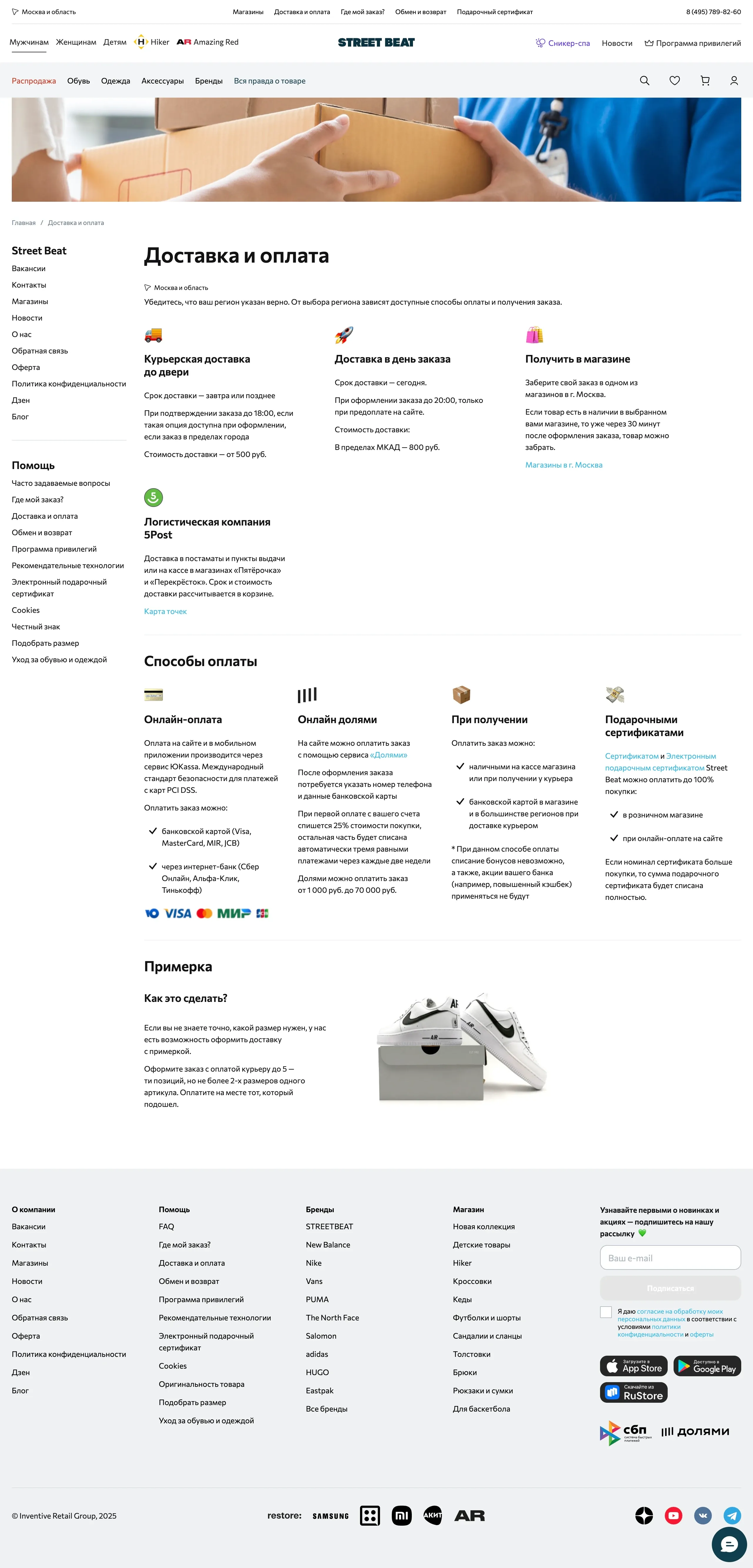 Информация о способах доставки и оплаты заказов.