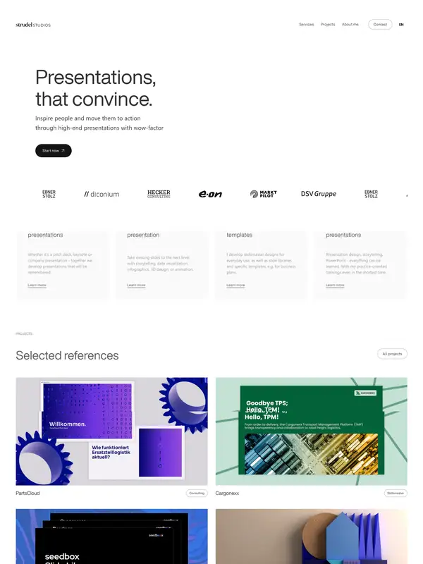 Strudel Studios is a presentation design and storytelling consultancy that offers customized solutions to enhance the effectiveness of presentations and engage audiences. They provide expert tips and services to help convey messages compellingly.