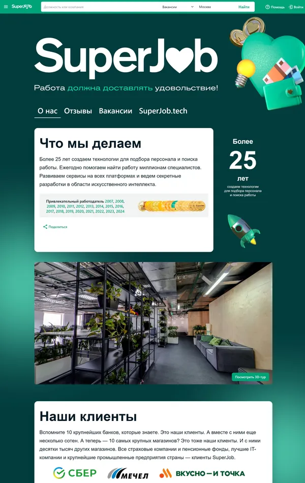Платформа, предлагающая более 800000 свежих вакансий от прямых работодателей в Москве, а также услуги по созданию резюме и размещению вакансий.